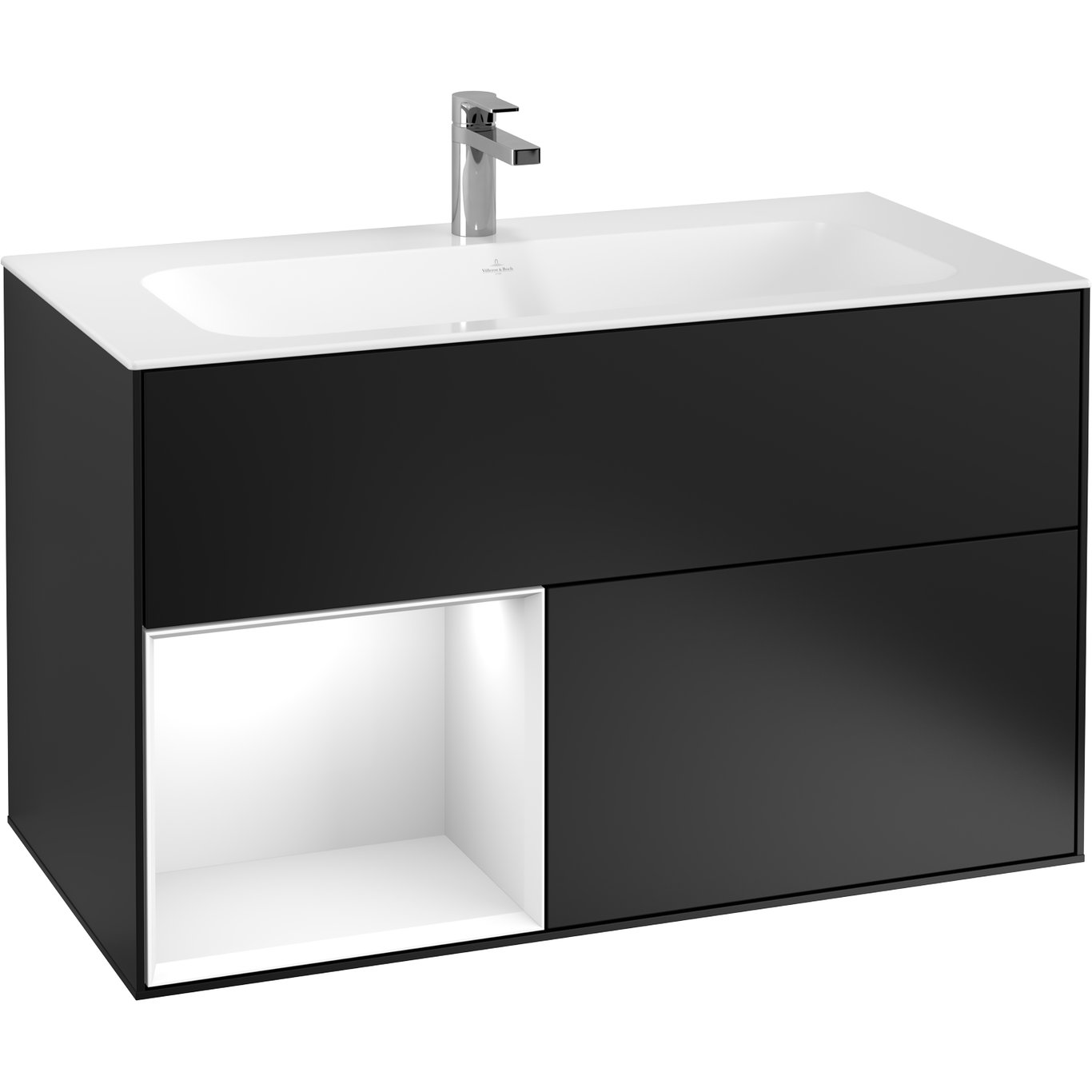 V&B FINION SERVANTSKAP 100 SORT MATT LAKK EMOTION-LYS, VENSTRESTILT HVIT HYLLE