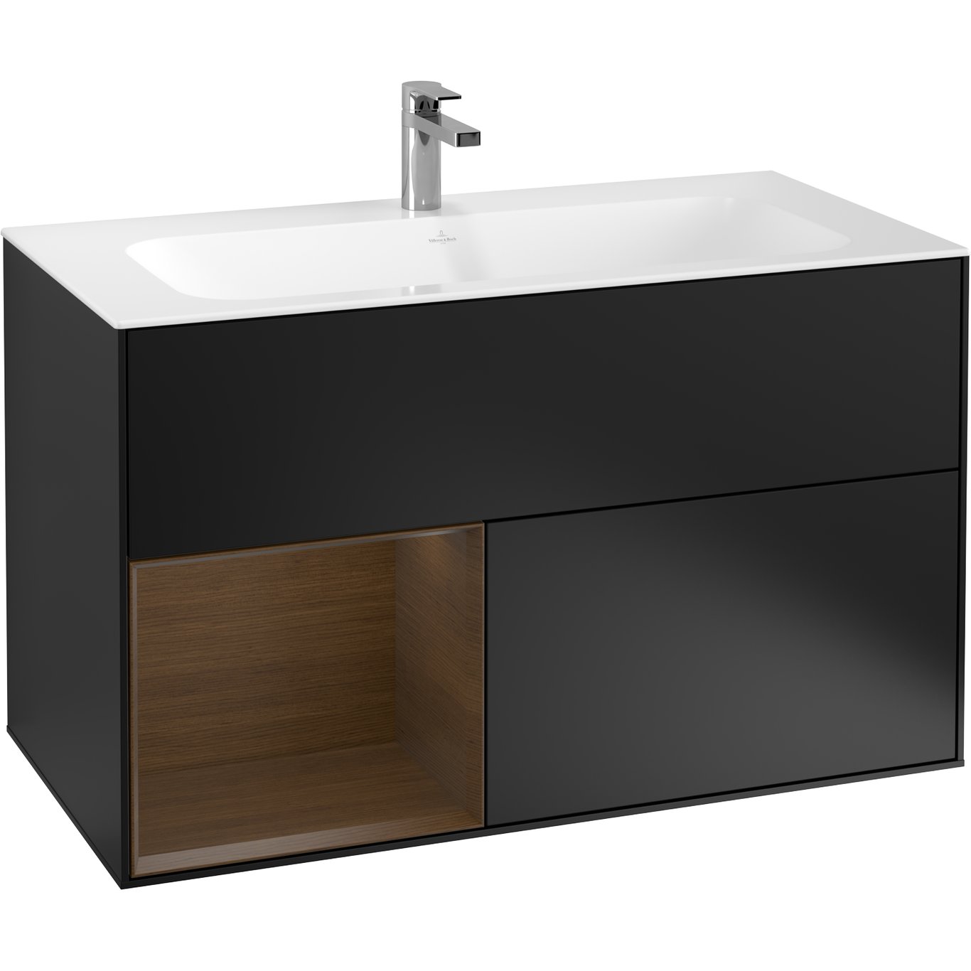 V&B FINION SERVANTSKAP 100 SORT MATT LAKK EMOTION-LYS, VENSTRESTILT VALNØTTHYLLE