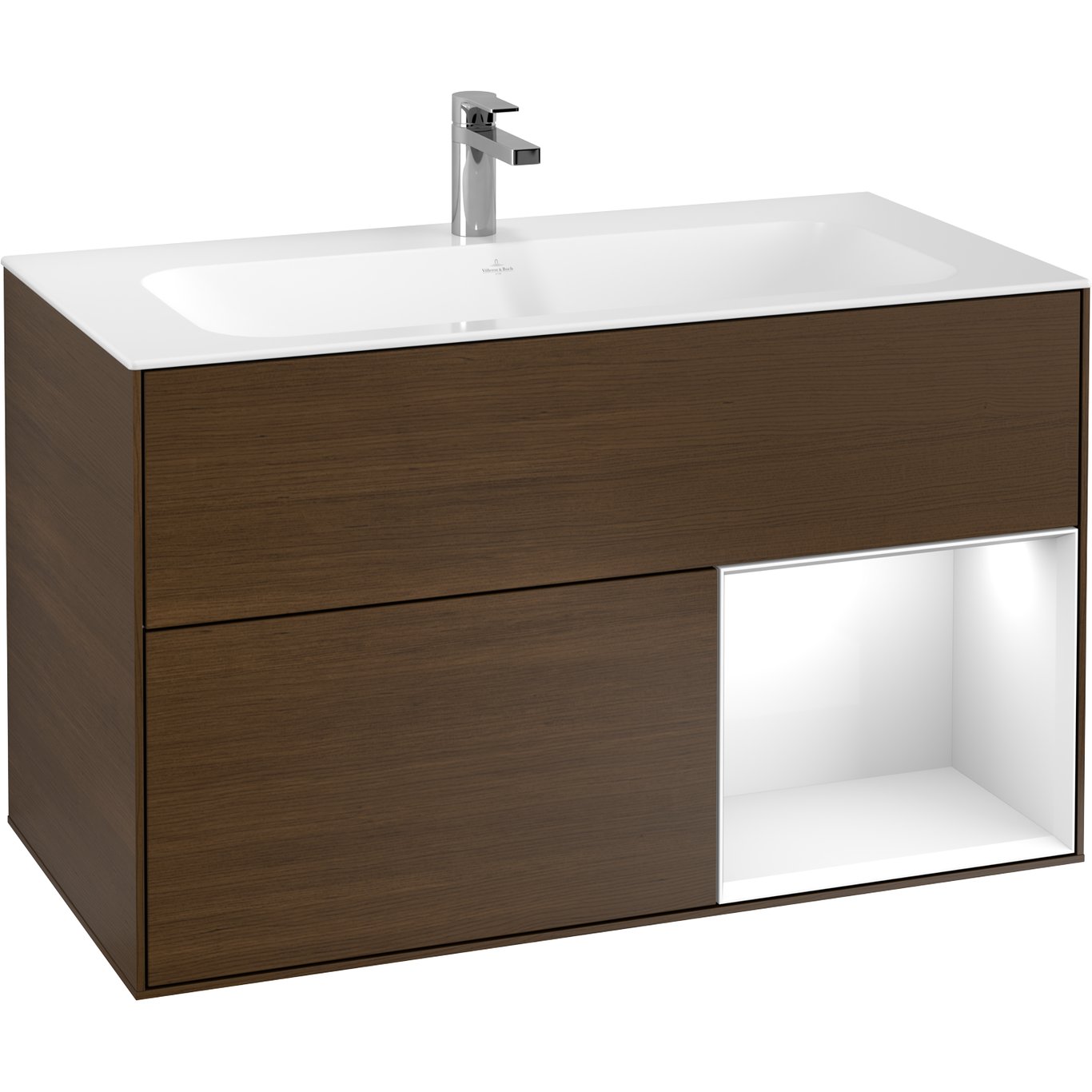 V&b finion servantskap 100 valnøtt finér emotion-lys, høyrestilt hvit hylle