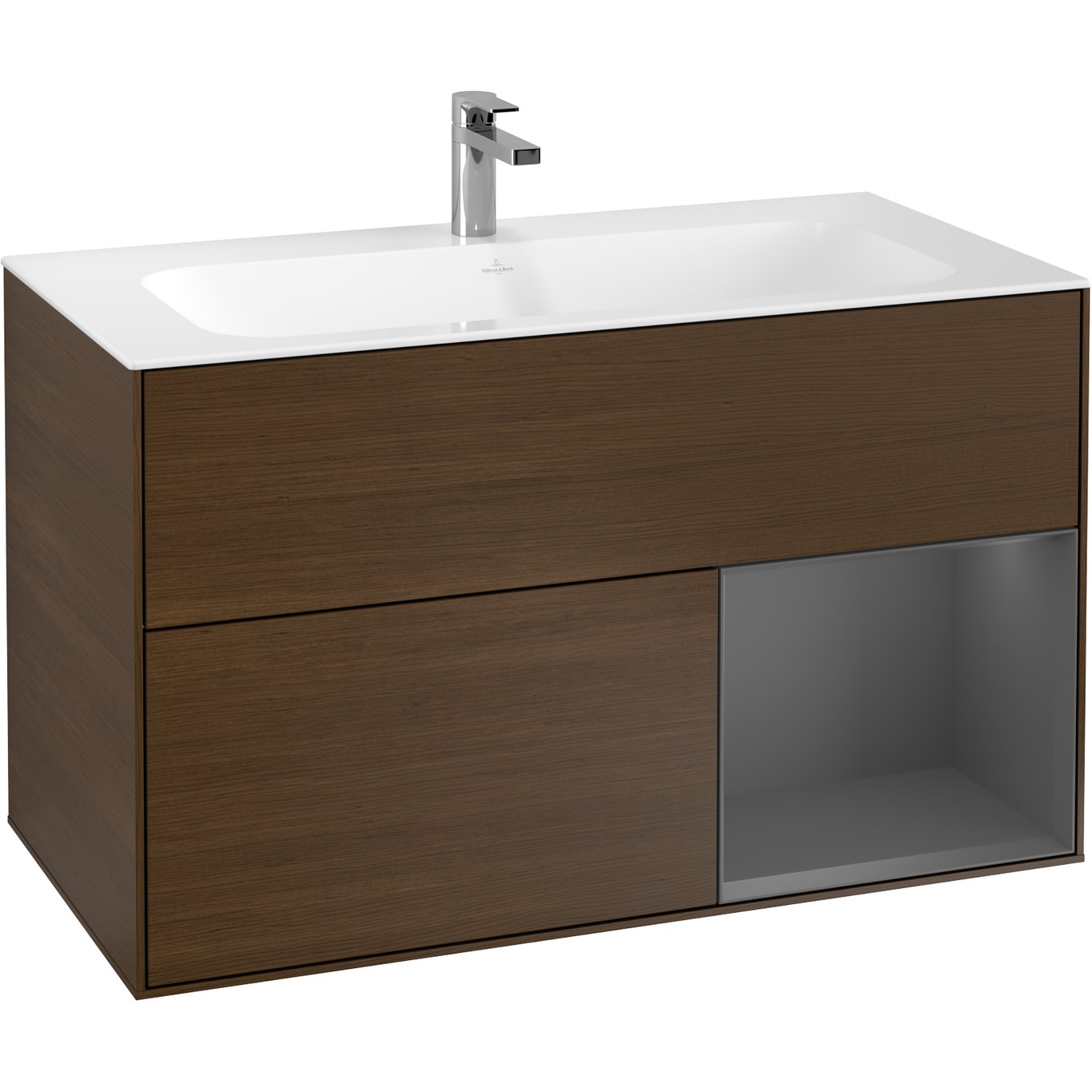 V&b finion servantskap 100 valnøtt finér m/lys høyrestilt antrasittgrå hylle