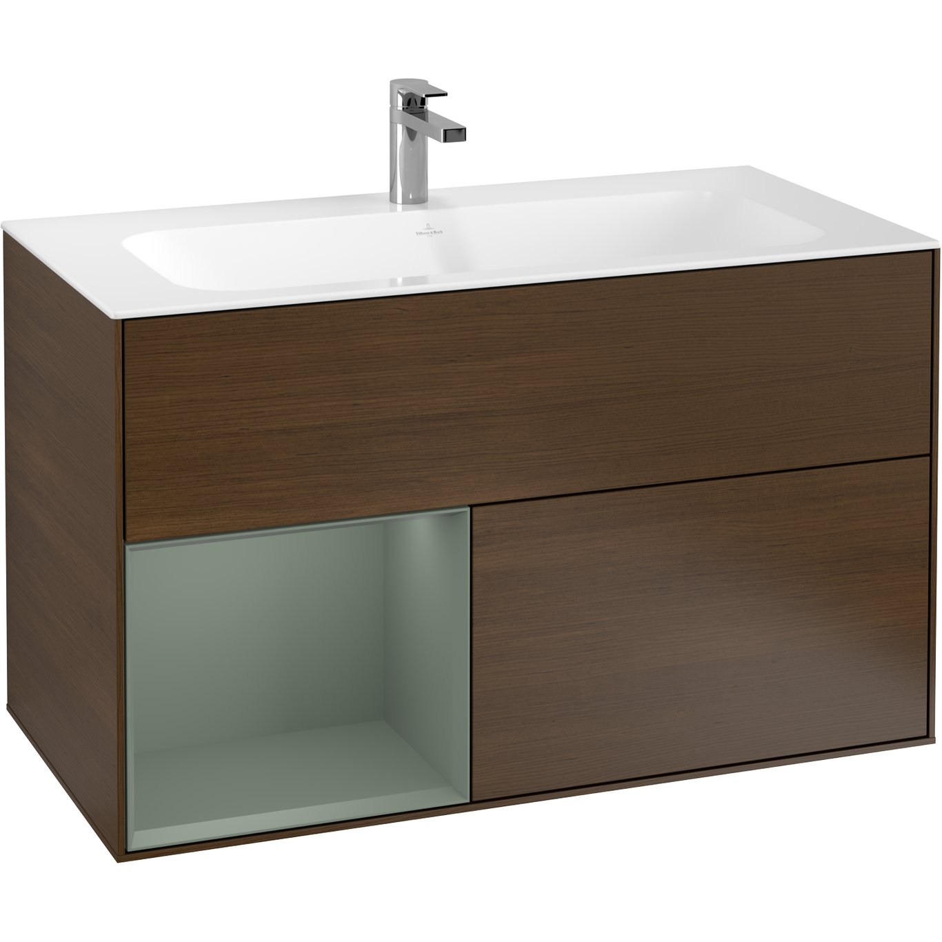 V&B FINION SERVANTSKAP 100 VALNØTT FINÉR M/LYS VENSTRESTILT OLIVENGRØNN HYLLE