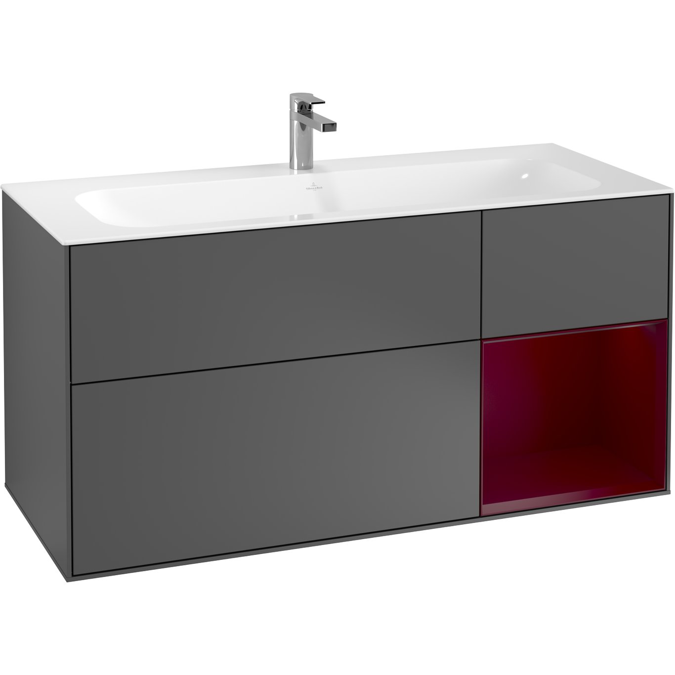 V&B FINION SERVANTSKAP 120 ANTRASITT MATT LAKK EMOTION-LYS, HØYRESTILT PEONRØD HYLLE