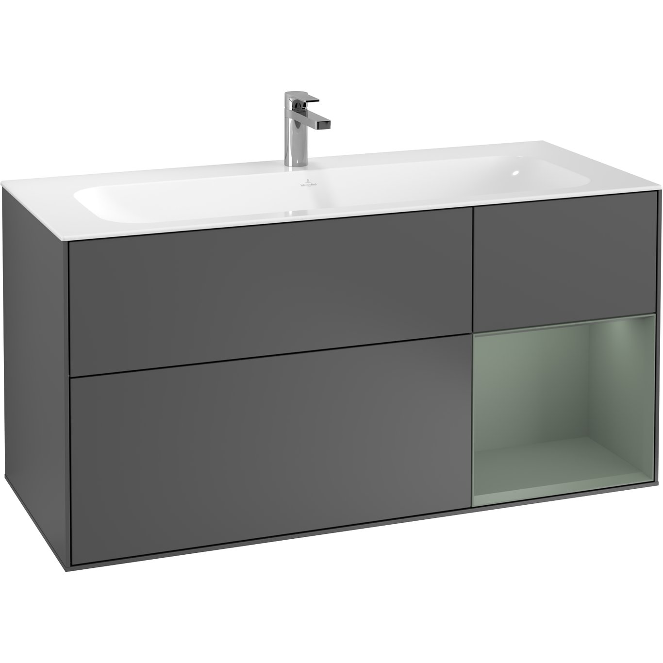 V&B FINION SERVANTSKAP 120 ANTRASITT MATT LAKK M/LYS, HØYRESTILT OLIVENGRØNN HYLLE