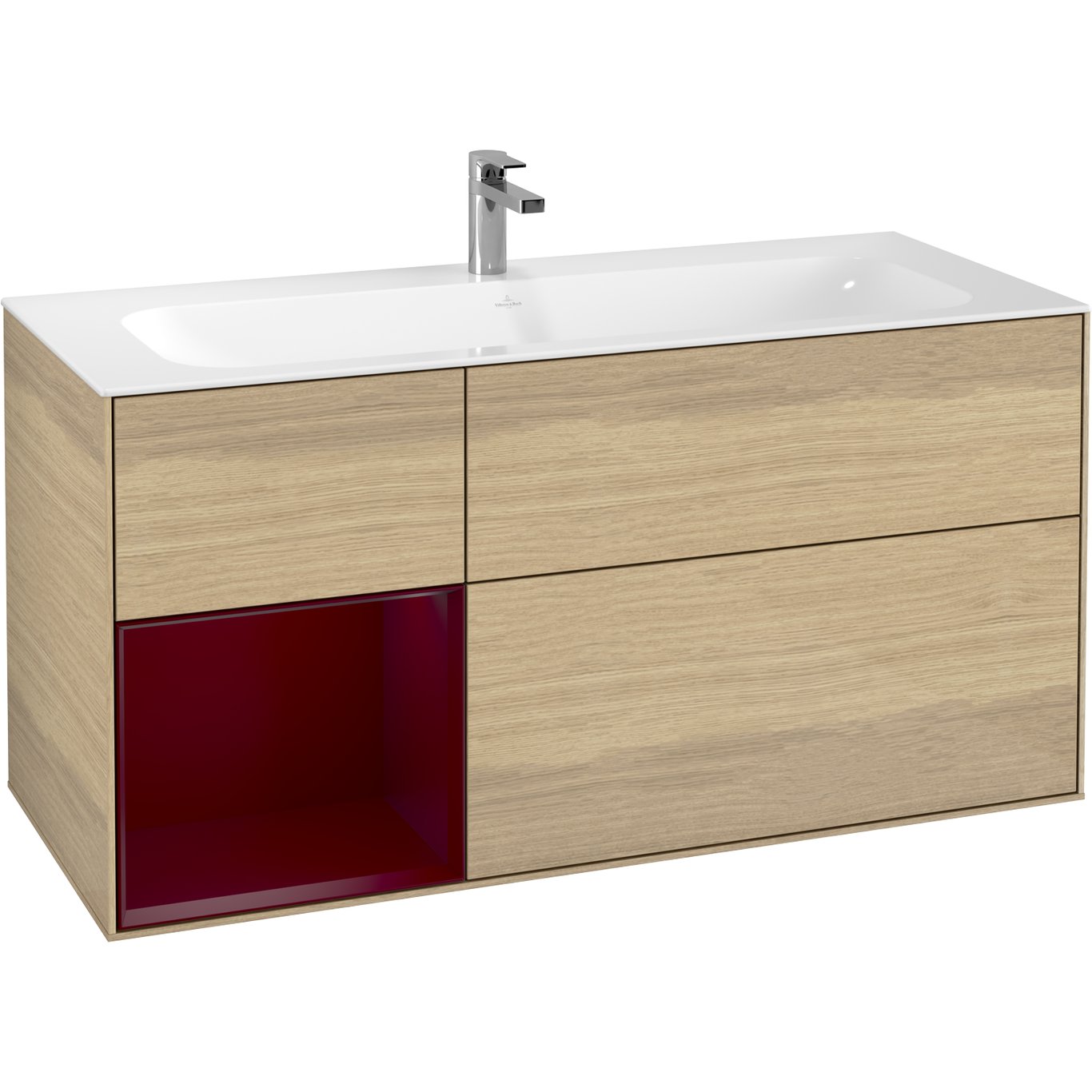 V&b finion servantskap 120 eik finér m/lys venstrestilt peonrød hylle