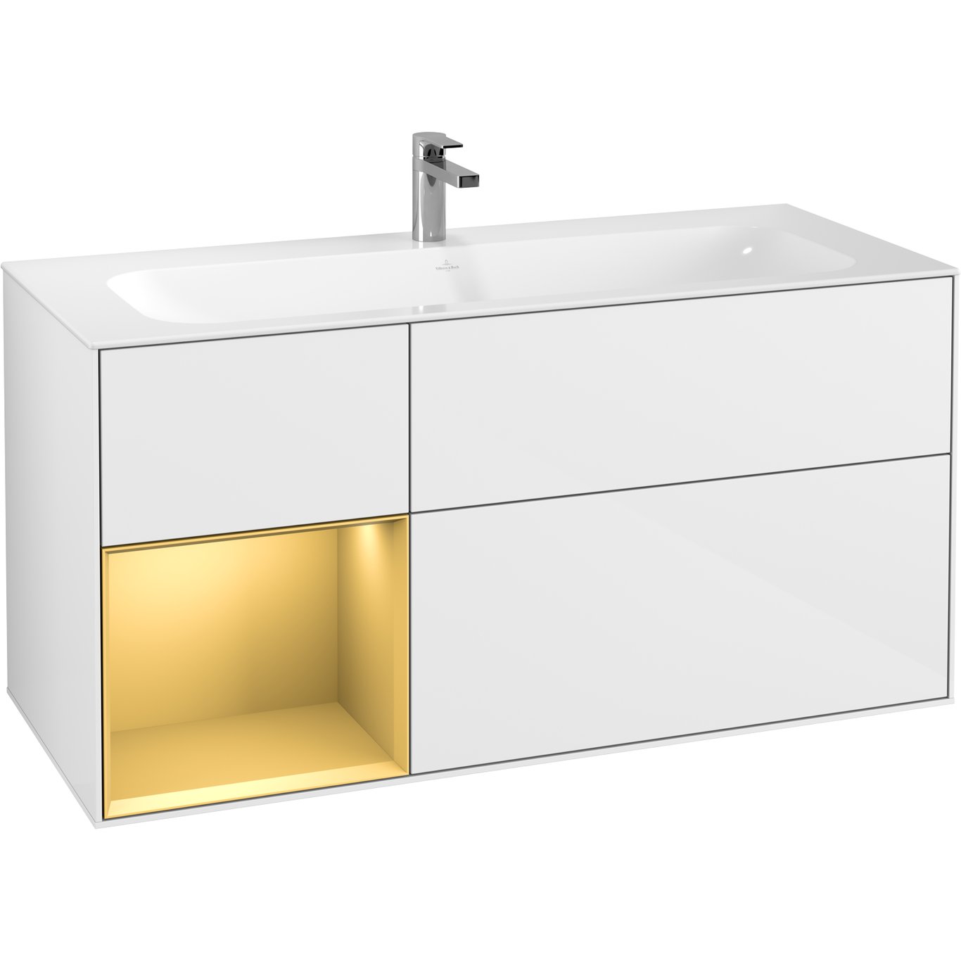 V&b finion servantskap 120 hvit høyglans lakk emotion-lys, venstrestilt matt gull hylle
