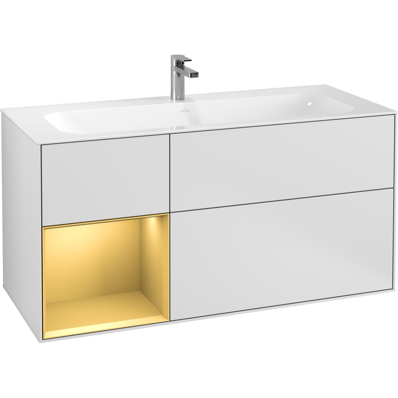 V&B FINION SERVANTSKAP 120 HVIT MATT LAKK EMOTION-LYS, VENSTRESTILT MATT GULL HYLLE