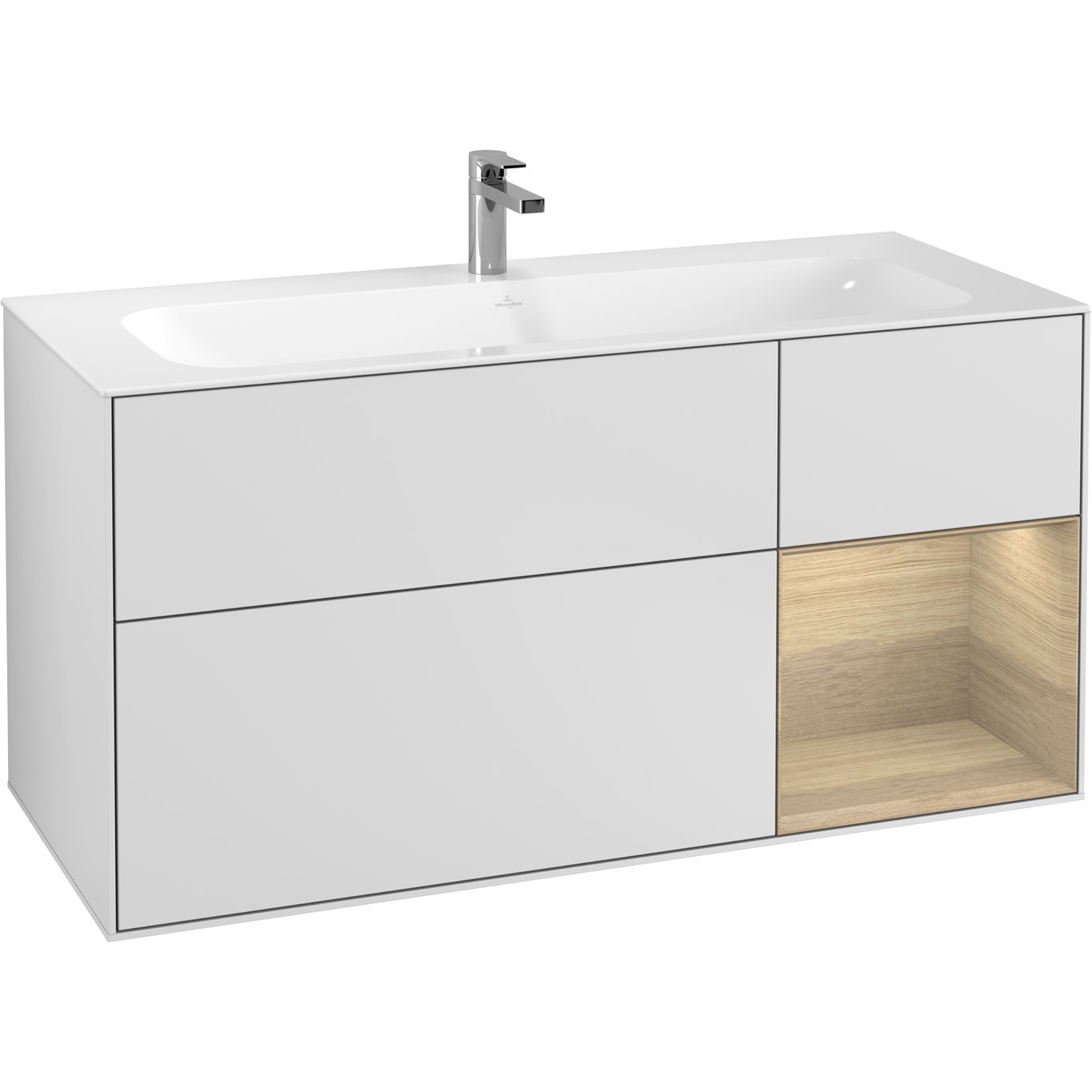 V&b finion servantskap 120 hvit matt lakk m/lys høyrestilt eikefinér hylle