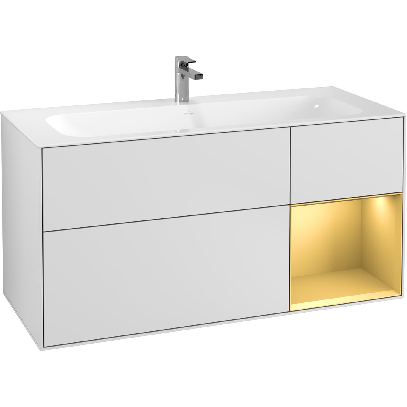 V&b finion servantskap 120 hvit matt lakk m/lys høyrestilt matt gull hylle