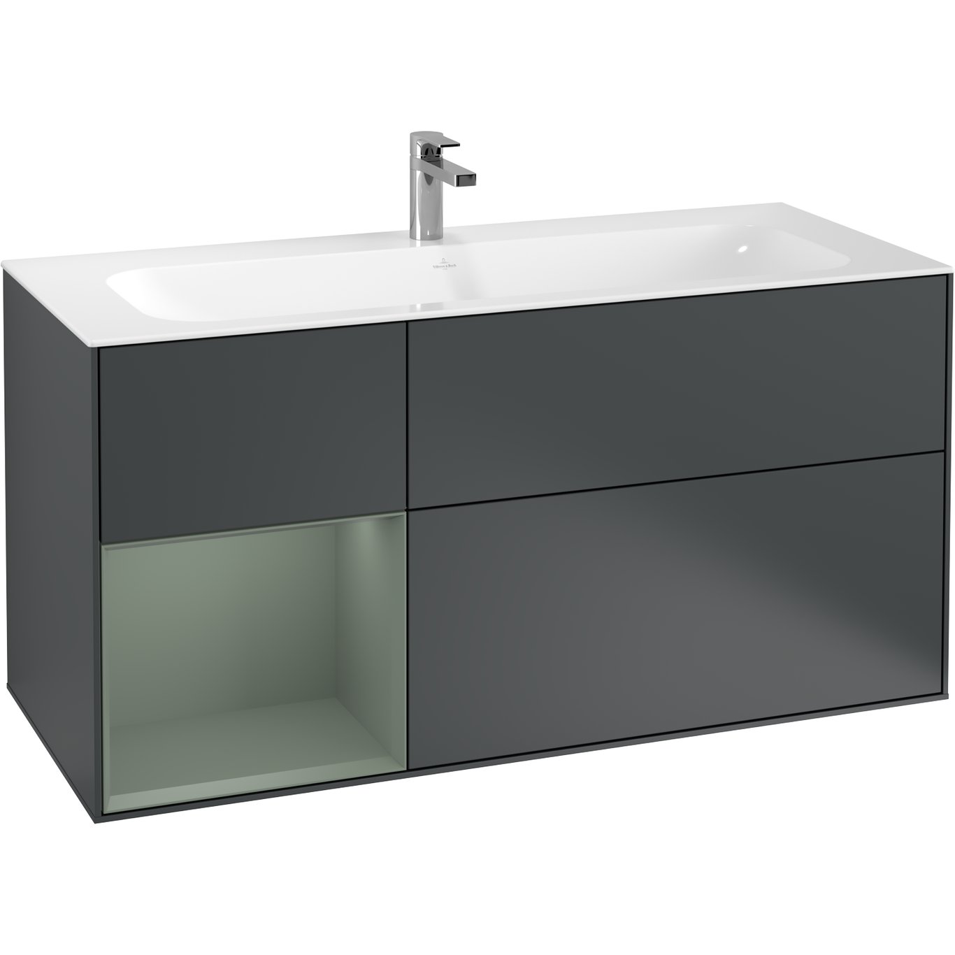 V&B FINION SERVANTSKAP 120 MIDNATTSBLÅ MATT LAKK M/LYS, VENSTRESTILT OLIVENGRØNN HYLLE