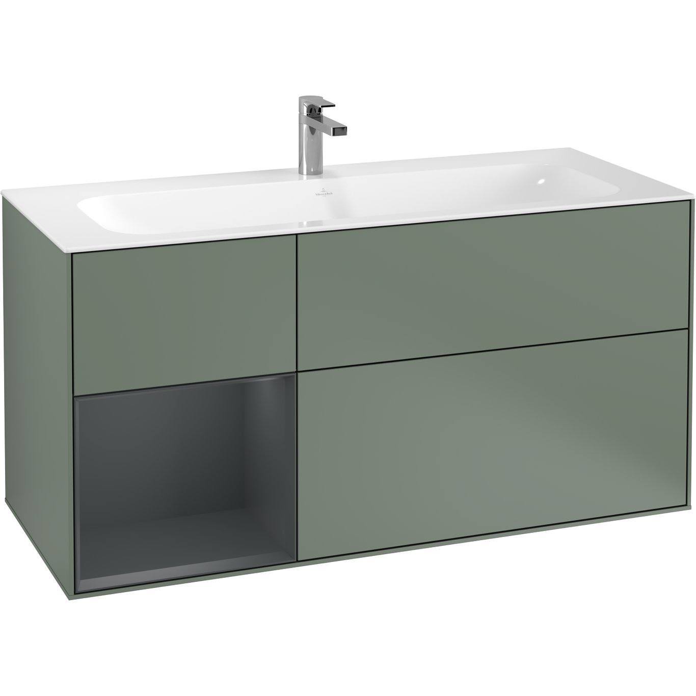 V&b finion servantskap 120 oliven matt lakk emotion-lys, venstrestilt midnattsblå hylle