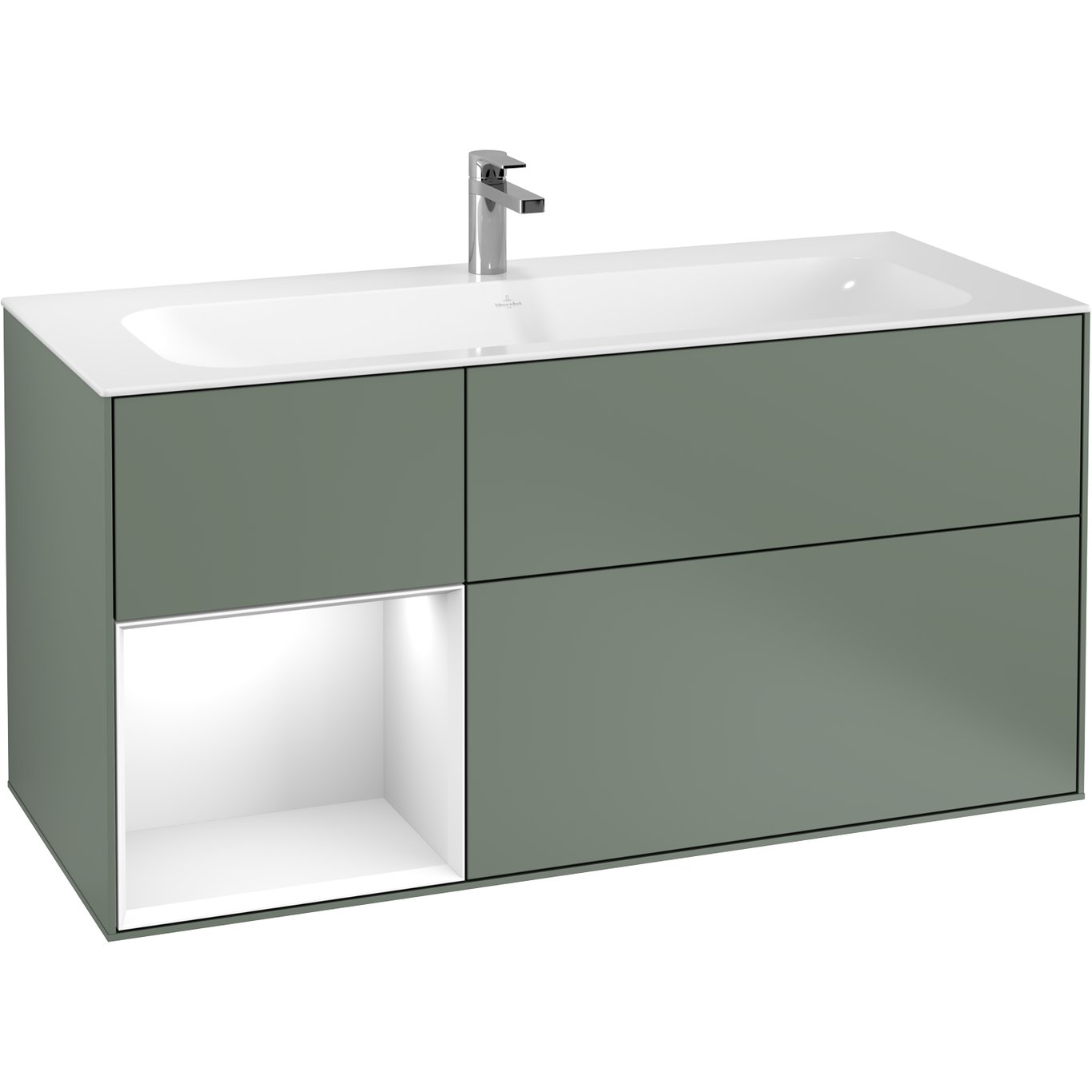 V&b finion servantskap 120 oliven matt lakk m/lys, venstrestilt hvit hylle