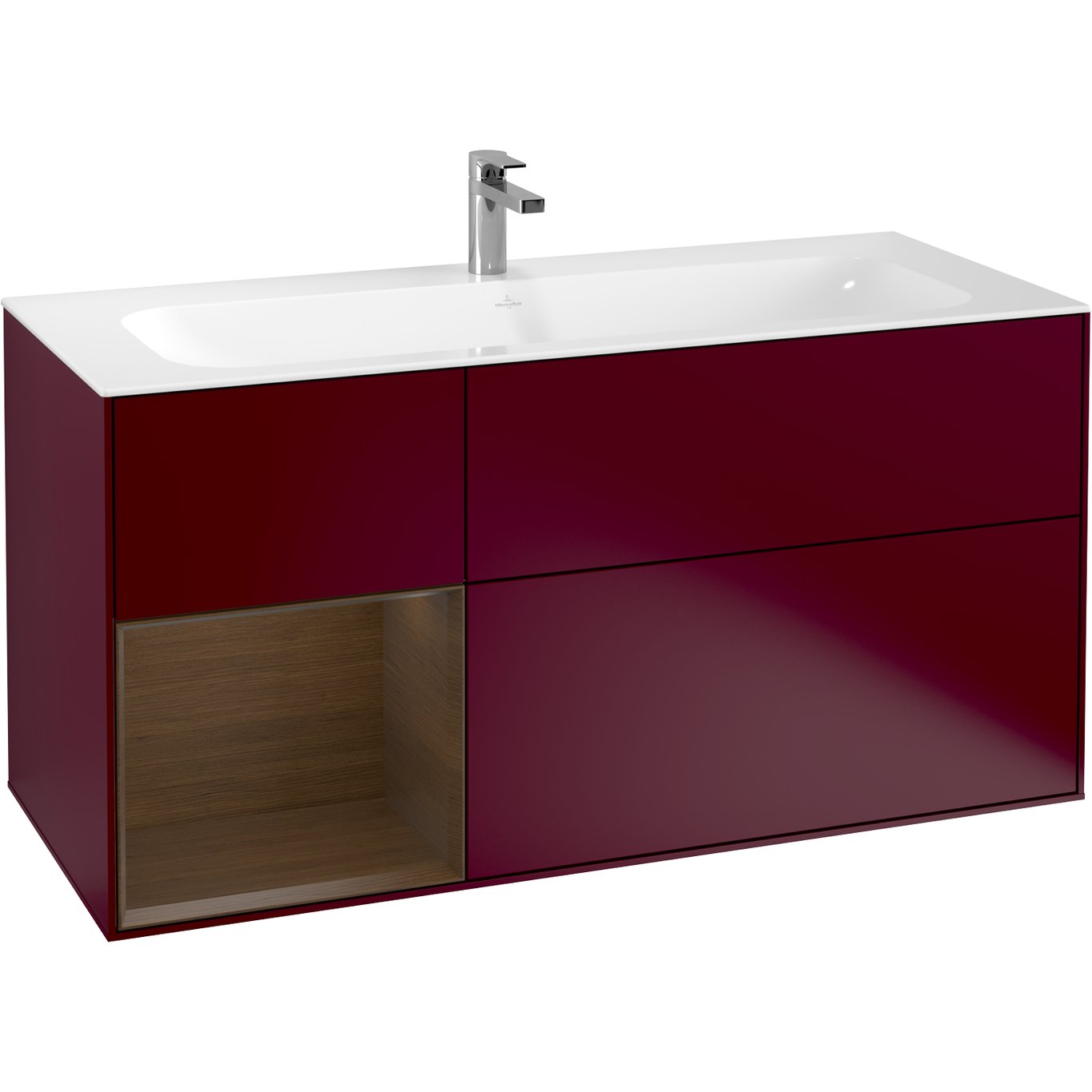 V&B FINION SERVANTSKAP 120 PEON MATT LAKK EMOTION-LYS, VENSTRESTILT VALNØTTHYLLE
