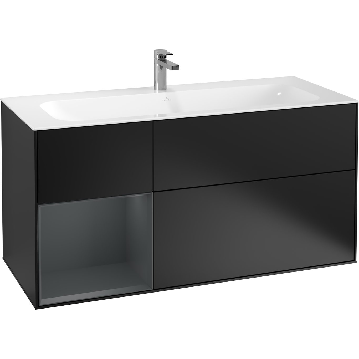 V&B FINION SERVANTSKAP 120 SORT MATT LAKK EMOTION-LYS, VENSTRESTILT MIDNATTSBLÅ HYLLE