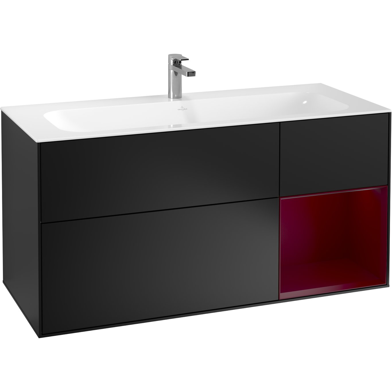 V&b finion servantskap 120 sort matt lakk m/lys høyrestilt peonrød hylle