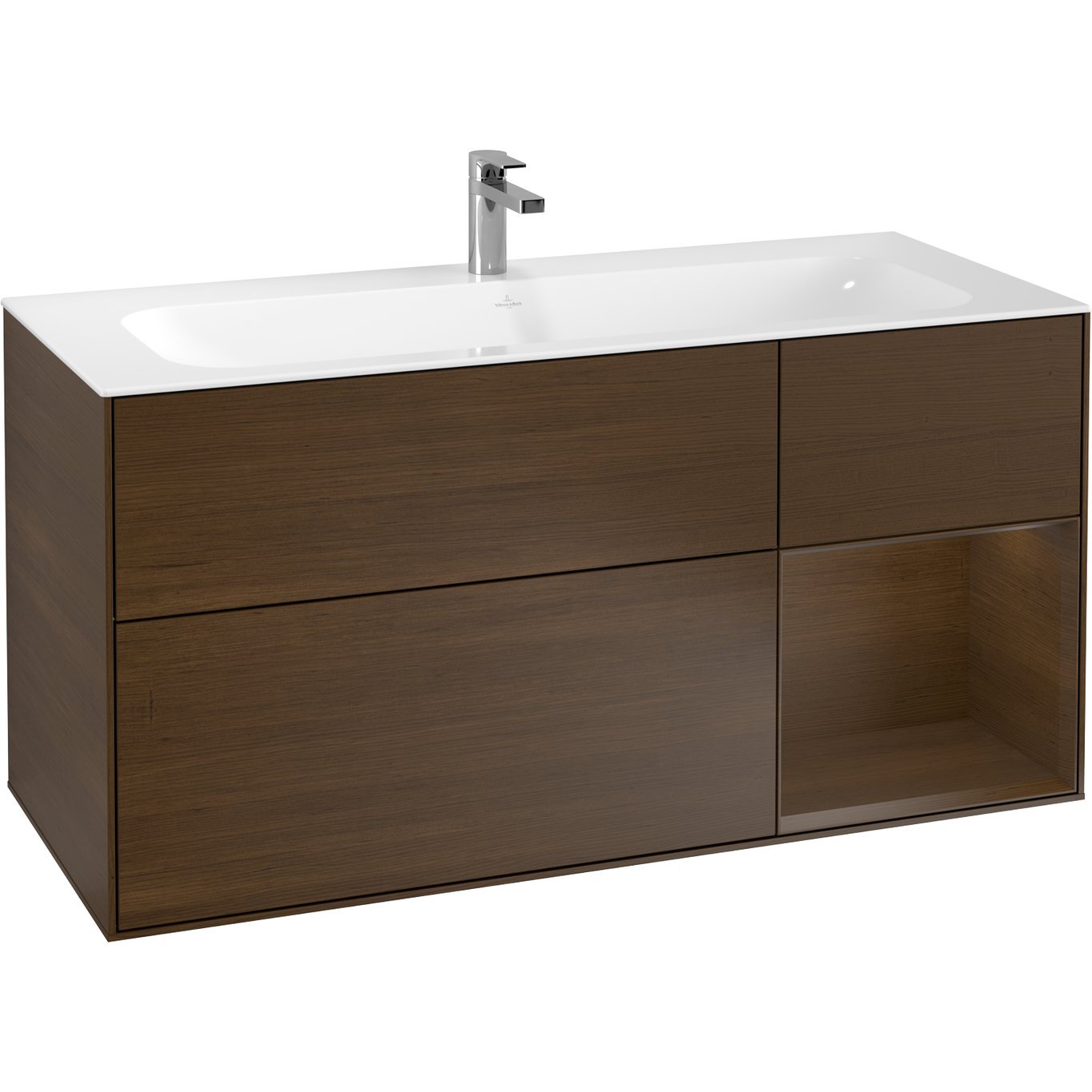 V&b finion servantskap 120 valnøtt finér emotion-lys, høyrestilt valnøtthylle