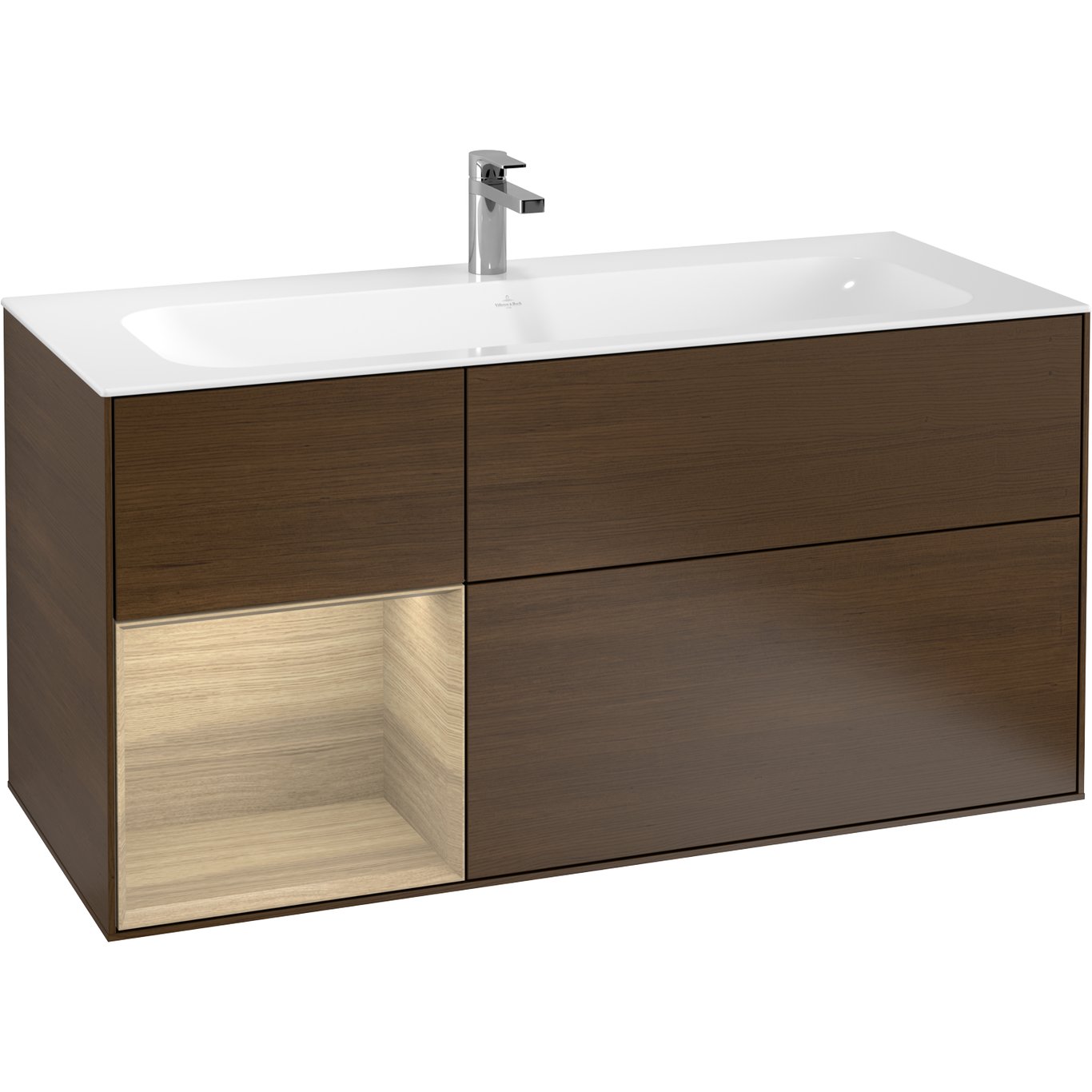V&B FINION SERVANTSKAP 120 VALNØTT FINÉR EMOTION-LYS, VENSTRESTILT EIKEFINÉR HYLLE