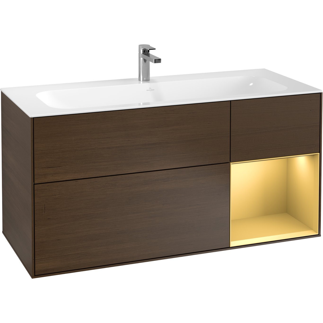 V&b finion servantskap 120 valnøtt finér m/lys høyrestilt matt gull hylle