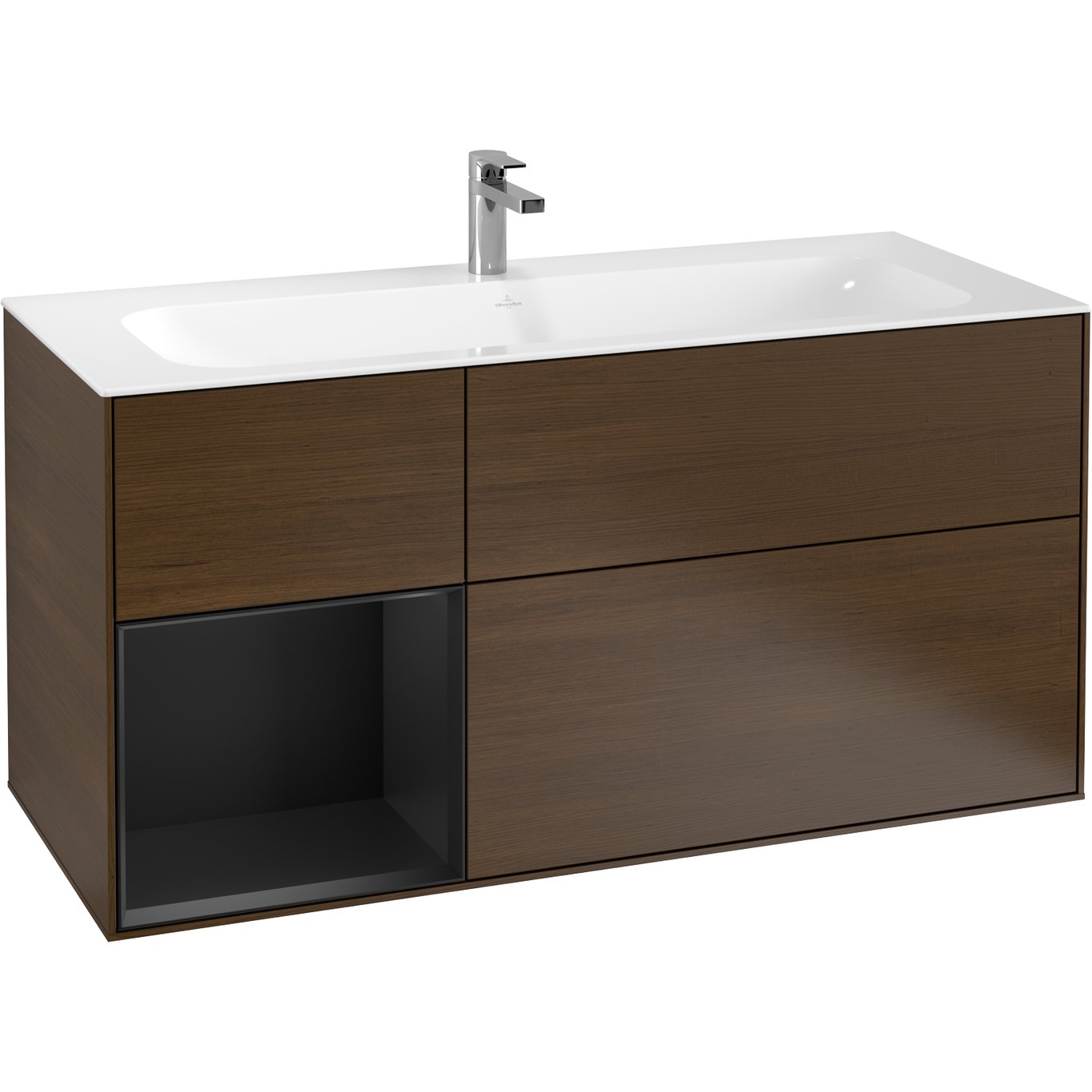 V&b finion servantskap 120 valnøtt finér m/lys venstrestilt svart matt hylle