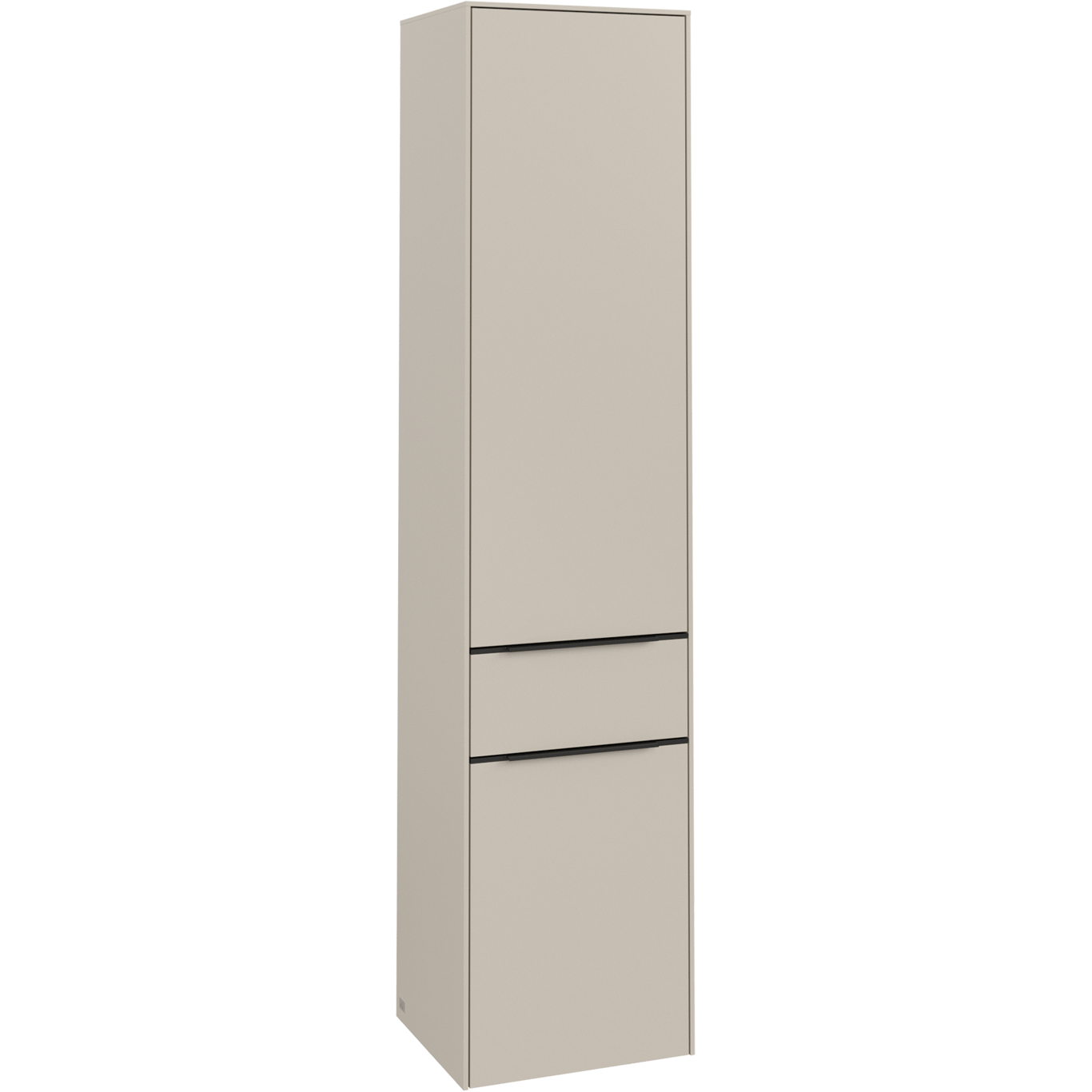 V&b subway 3.0 høyskap 40x171 høyre 2 dører & skuff cashmere grey håndtak i volcano black