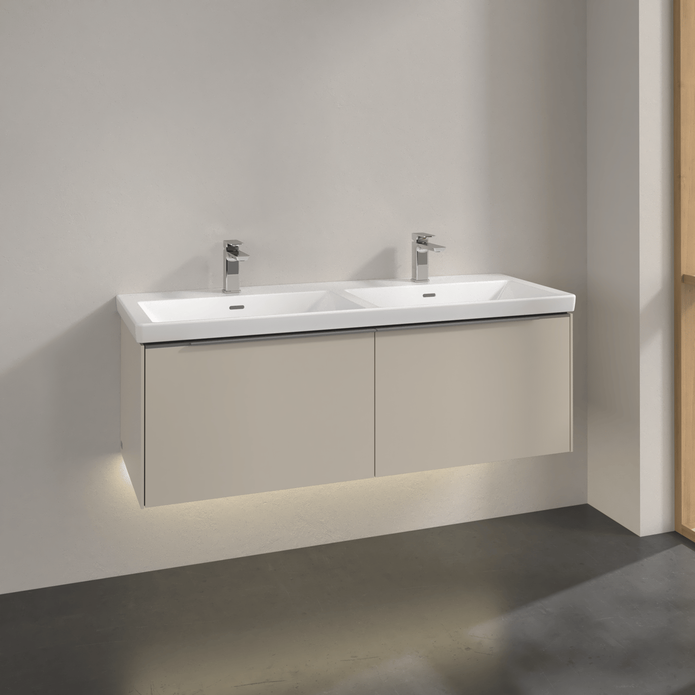 V&b subway 3.0 servantskap 127x42 f/dobbel servant cashmere grey m/lys håndtak i krom