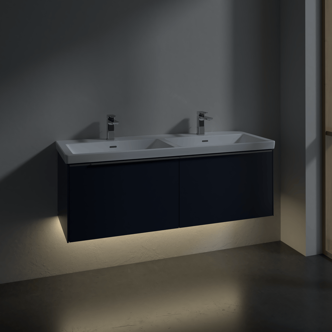 I tillegg til belyste skuffer er servantskapet også opplyst under, noe som er perfekt når du for eksempel må på do på natten, så du slipper å bli blendet av å måtte skru på alt lyset på badet.