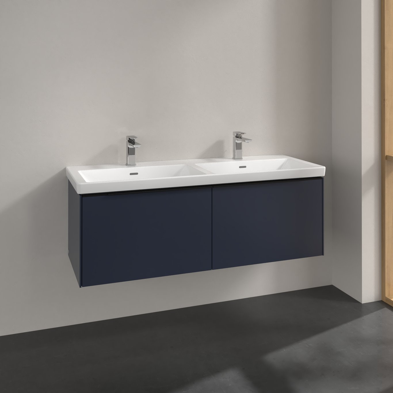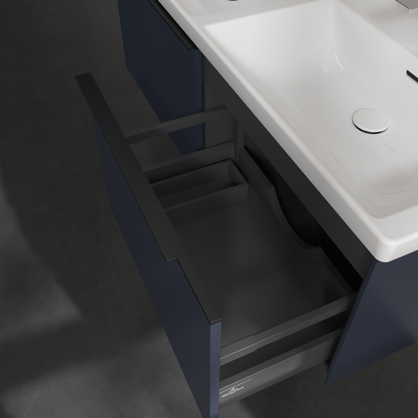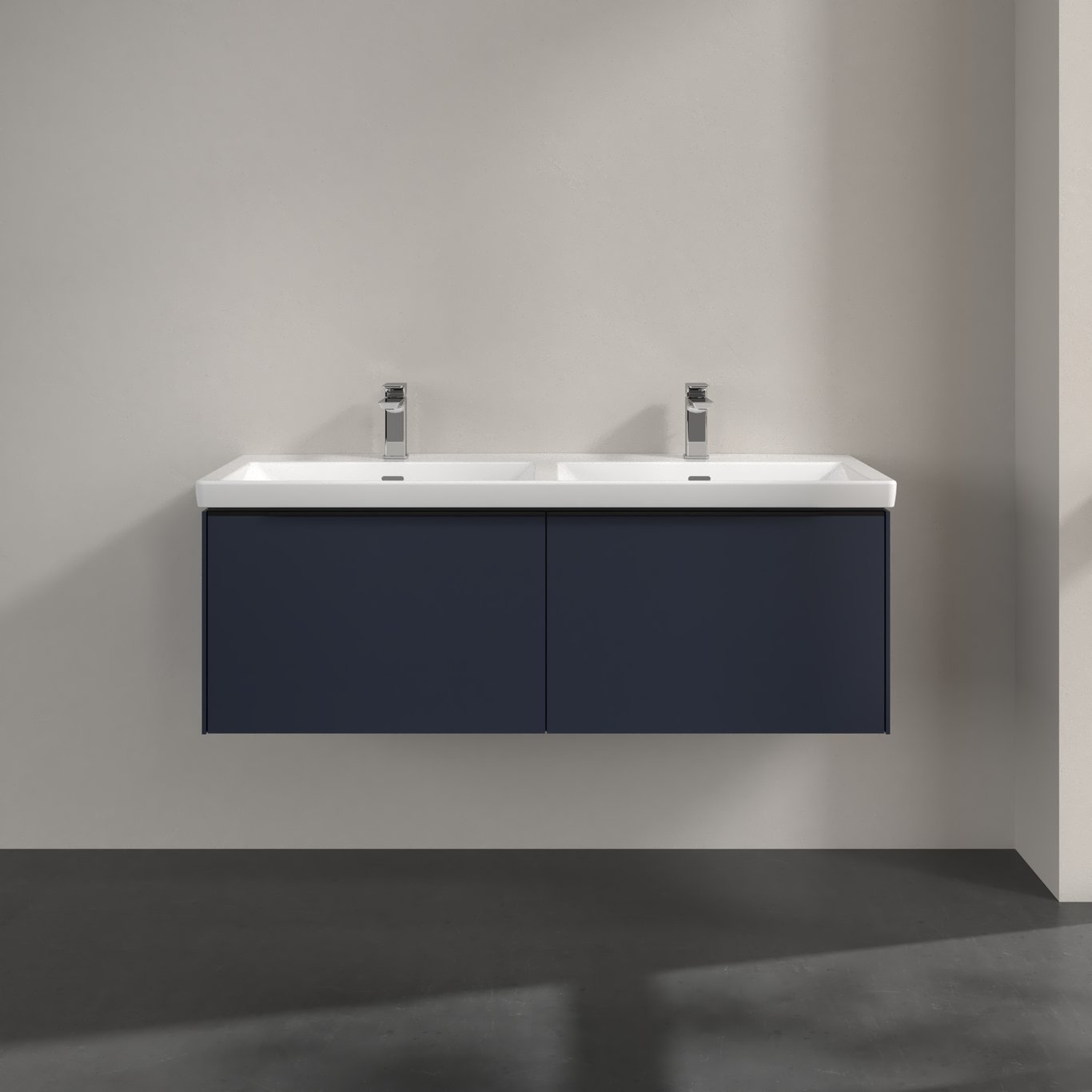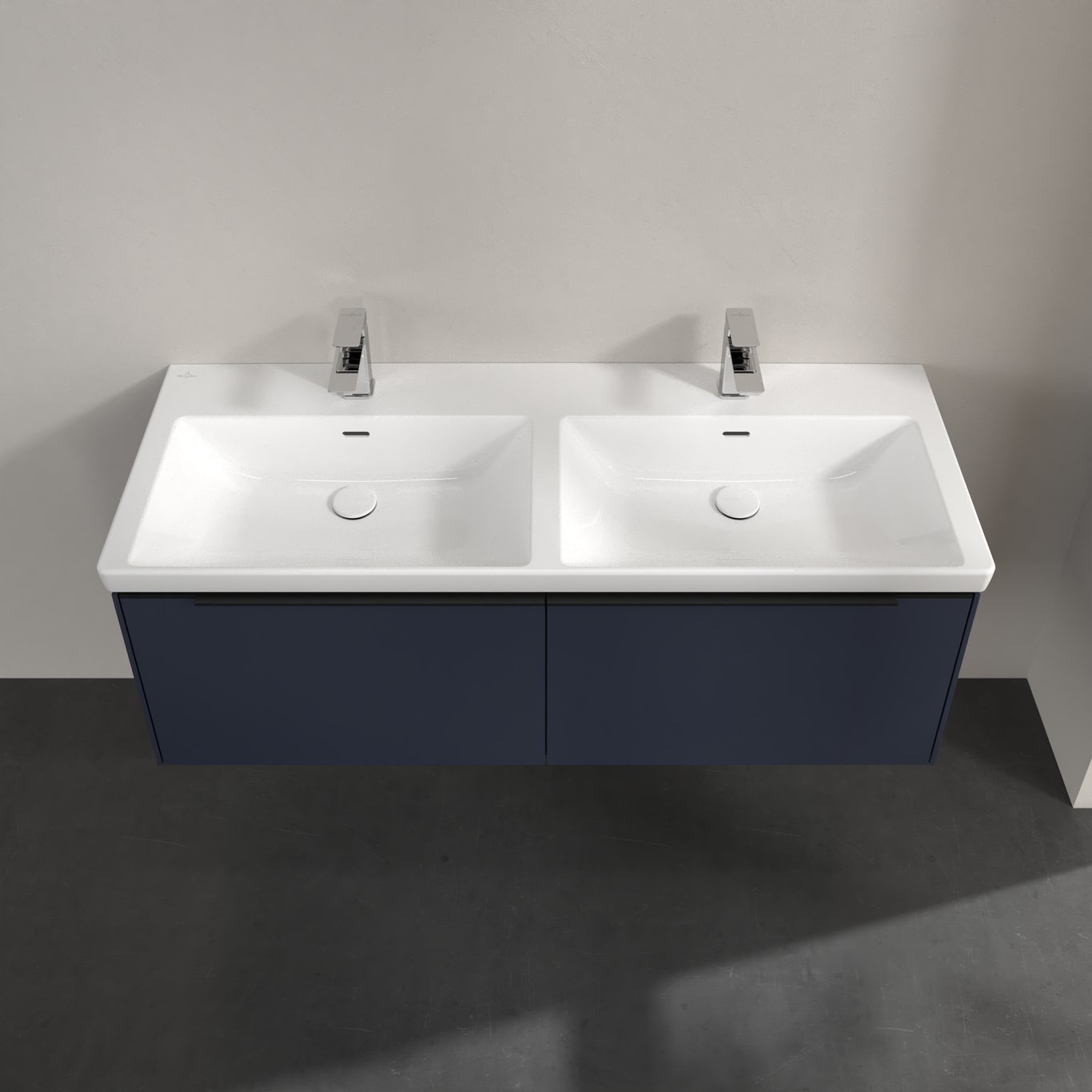 V&b subway 3.0 servantskap 127x42 f/dobbel servant marine blue håndtak i volcano black