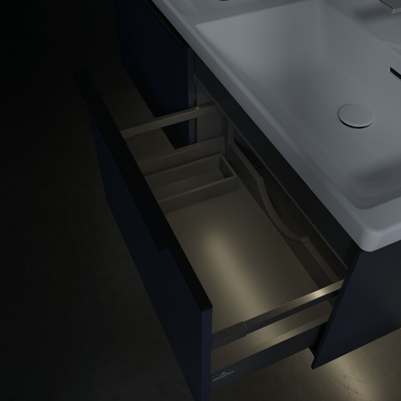 V&b subway 3.0 servantskap 127x42 f/dobbel servant marine blue m/lys håndtak i volcano black