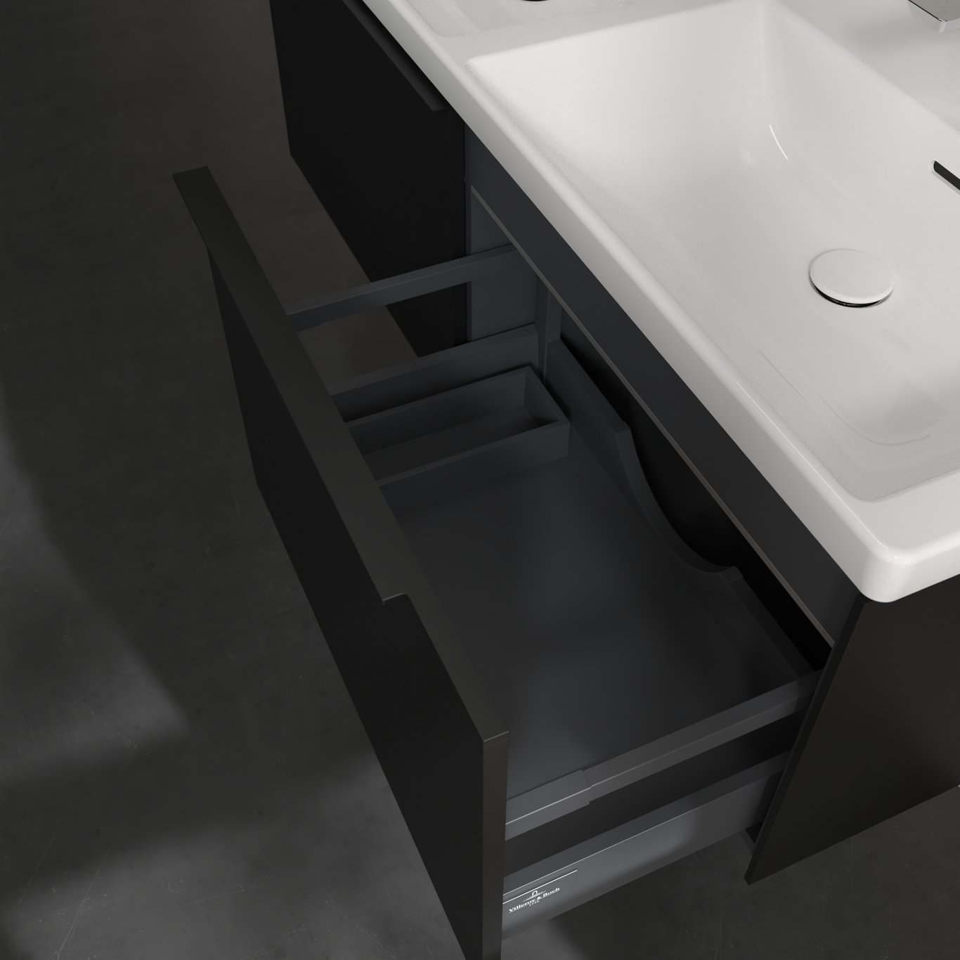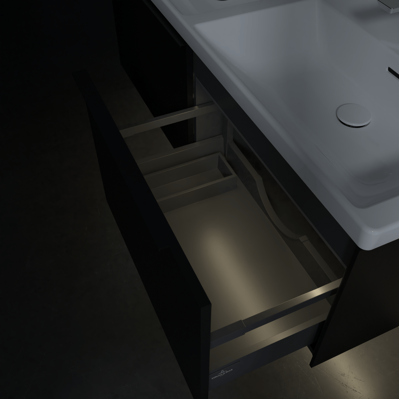 V&B SUBWAY 3.0 SERVANTSKAP 127X42 F/DOBBEL SERVANT VOLCANO BLACK M/LYS HÅNDTAK I MØBELETS FARGE