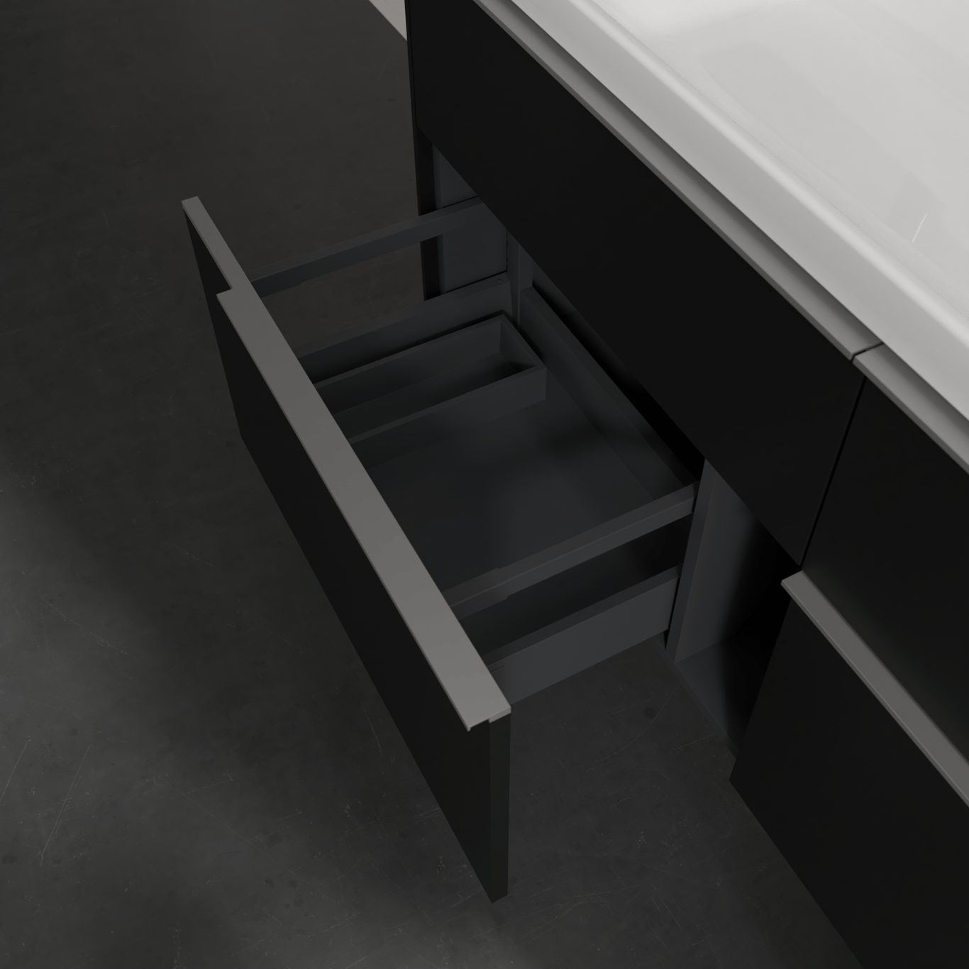 Servantskapet har belyste skuffer med god oppbevaringsplass, og en soft close- og self close-funksjon som sørger for myk lukking, selv når skuffene blir smelt igjen. LED-lyset i skuffen har integrert bevegelsessensor så den automatisk skrur seg på og av når skuffen åpnes og lukkes.