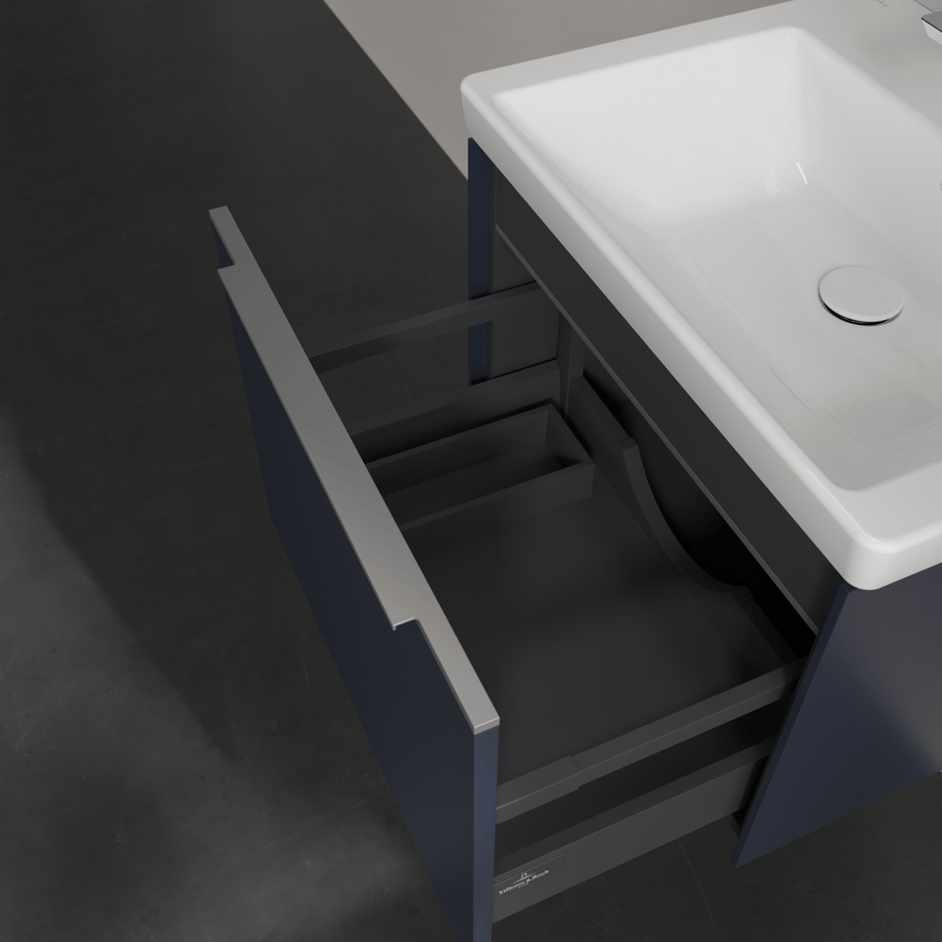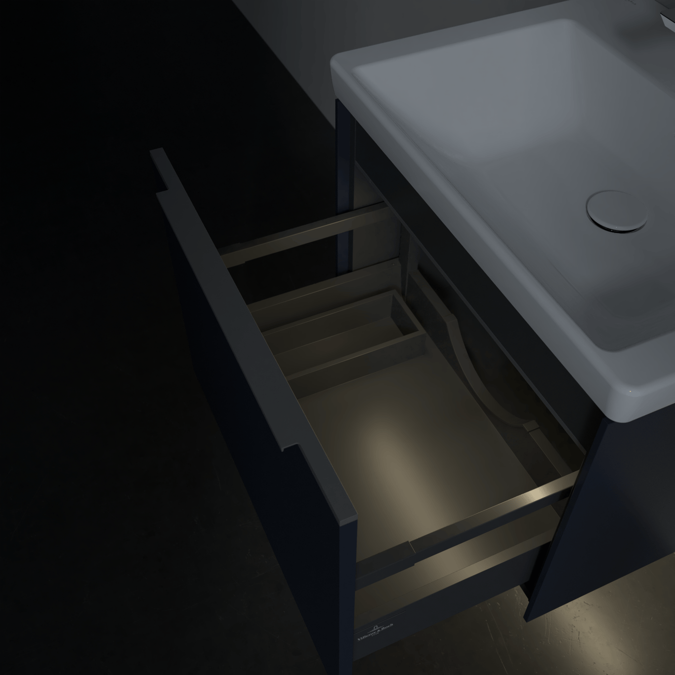 V&b subway 3.0 servantskap 57x42 marine blue m/lys håndtak i krom