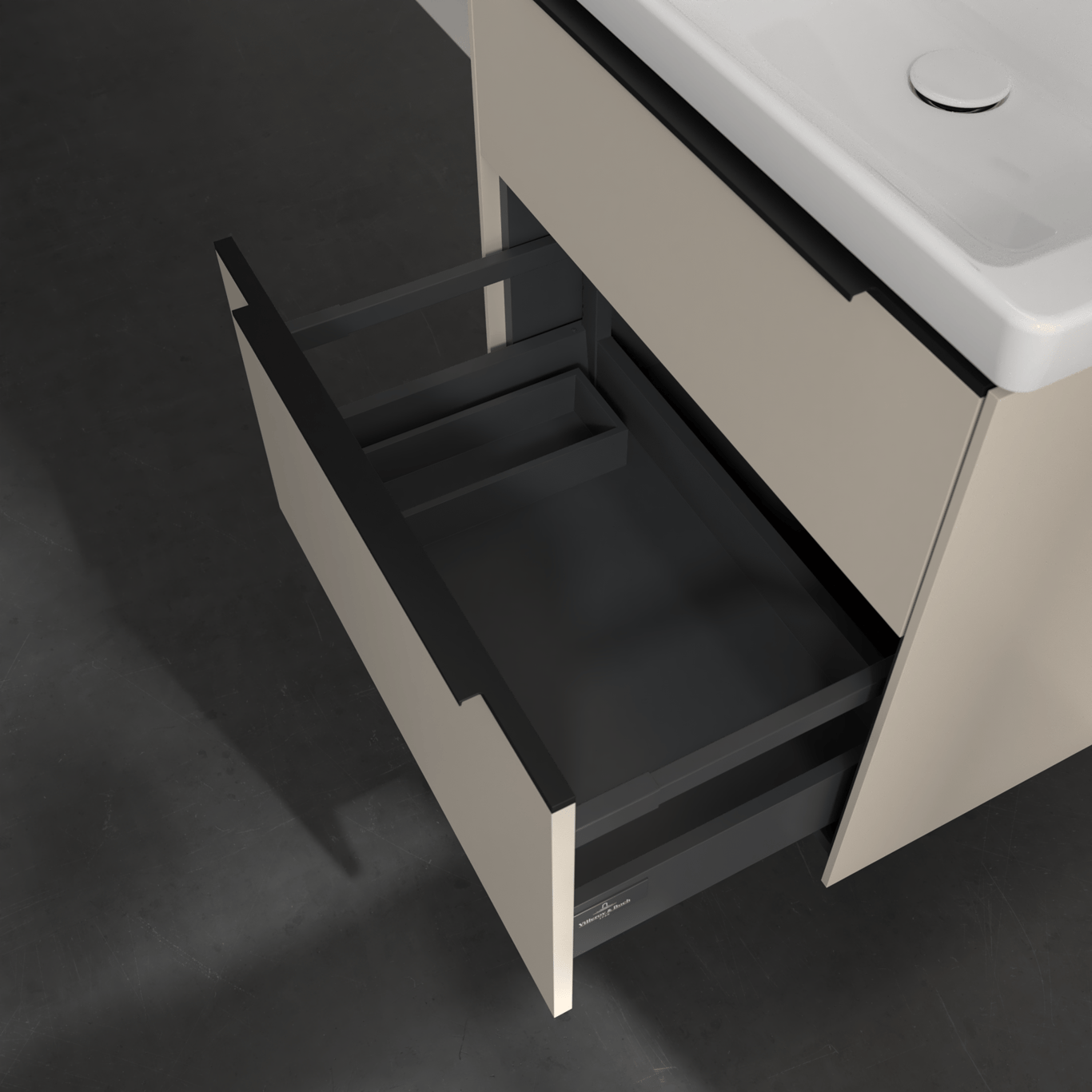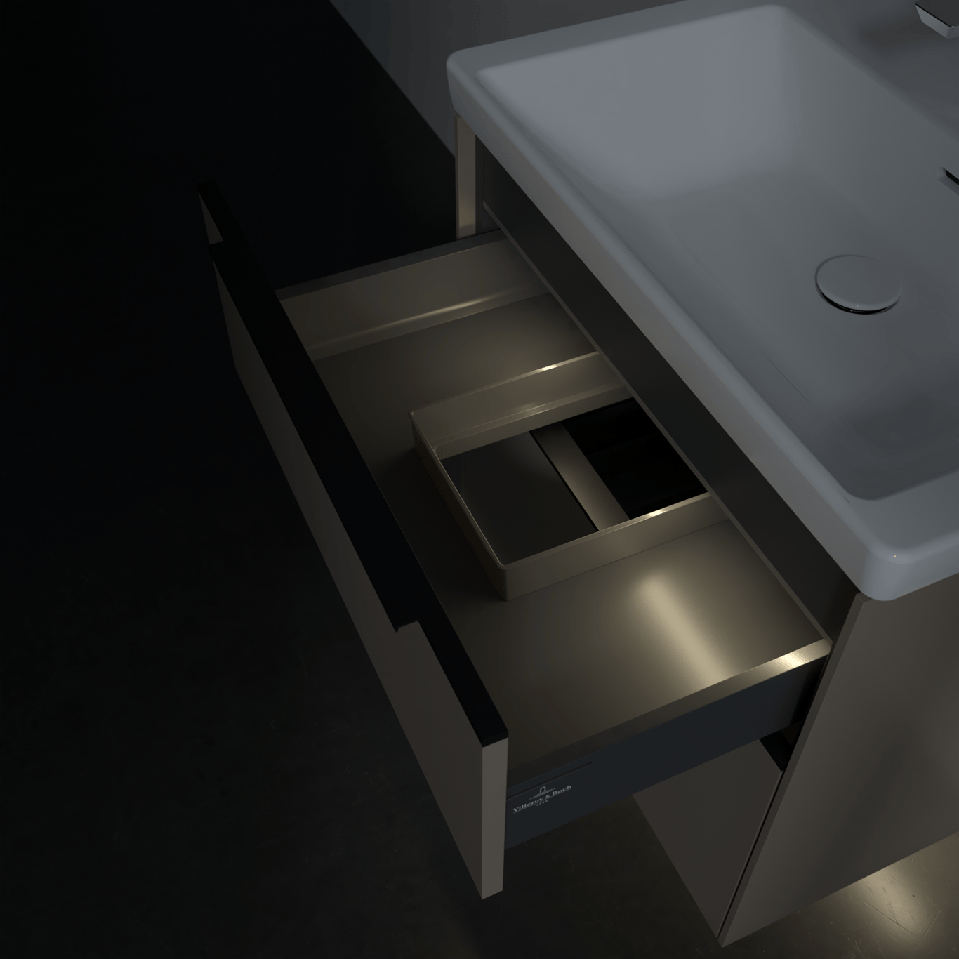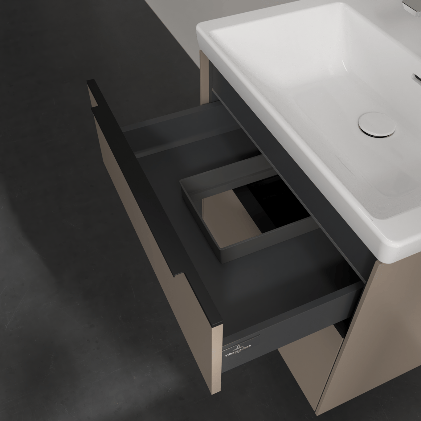 V&B SUBWAY 3.0 SERVANTSKAP 62X57 BLACK TAUPE M/LYS HÅNDTAK I VOLCANO