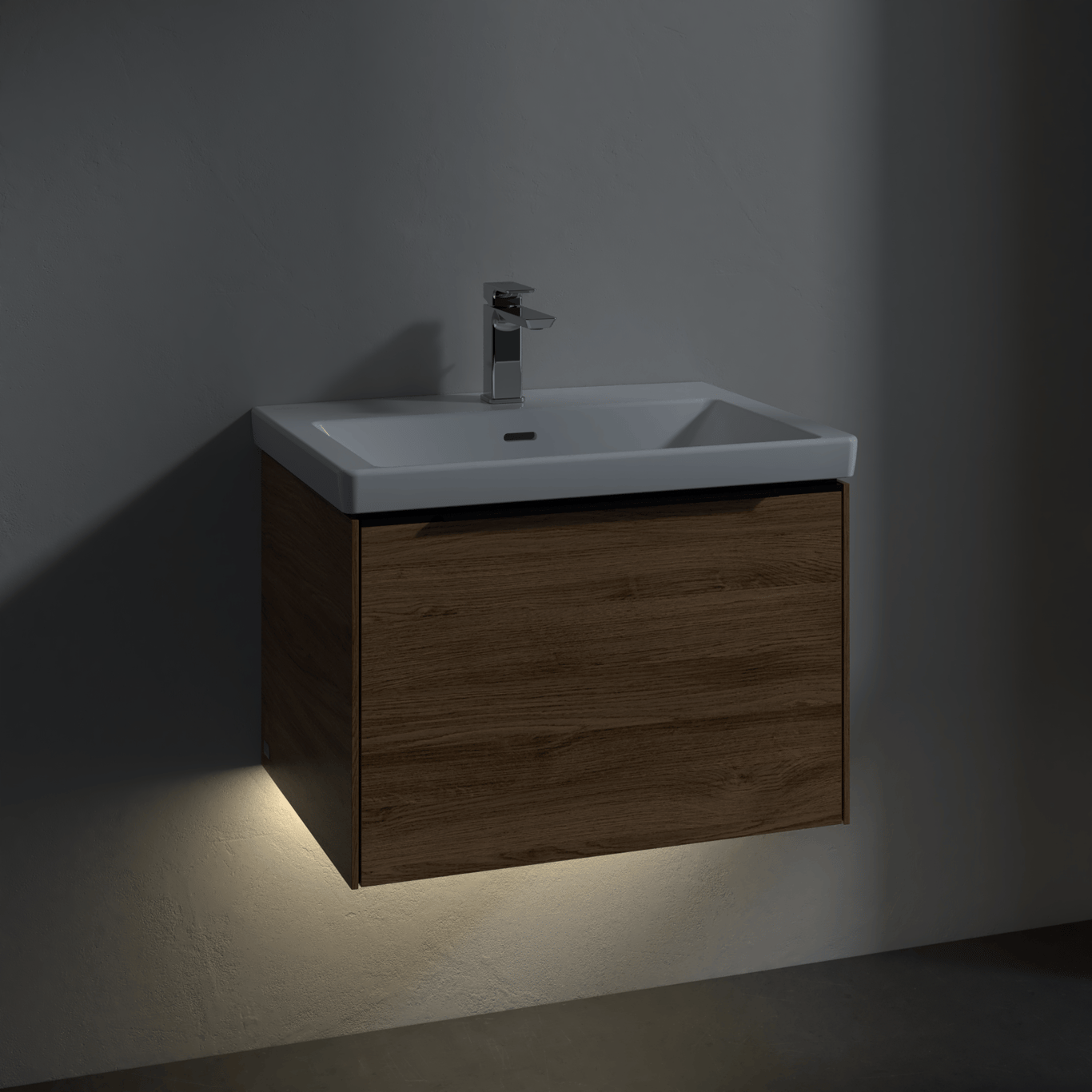 I tillegg til belyste skuffer er servantskapet også opplyst under, noe som er perfekt når du for eksempel må på do på natten, så du slipper å bli blendet av å måtte skru på alt lyset på badet.
