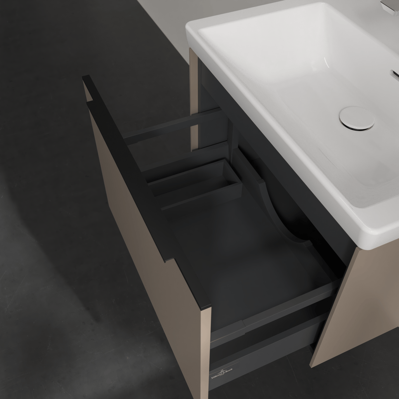 V&B SUBWAY 3.0 SERVANTSKAP 66X42 TAUPE HÅNDTAK I VOLCANO BLACK
