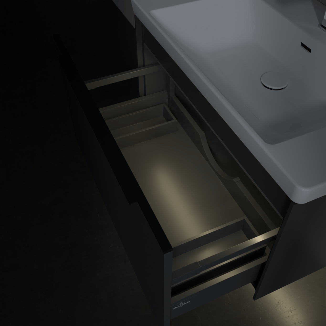 V&B SUBWAY 3.0 SERVANTSKAP 77X42 BLACK GRAPHITE M/LYS HÅNDTAK I VOLCANO