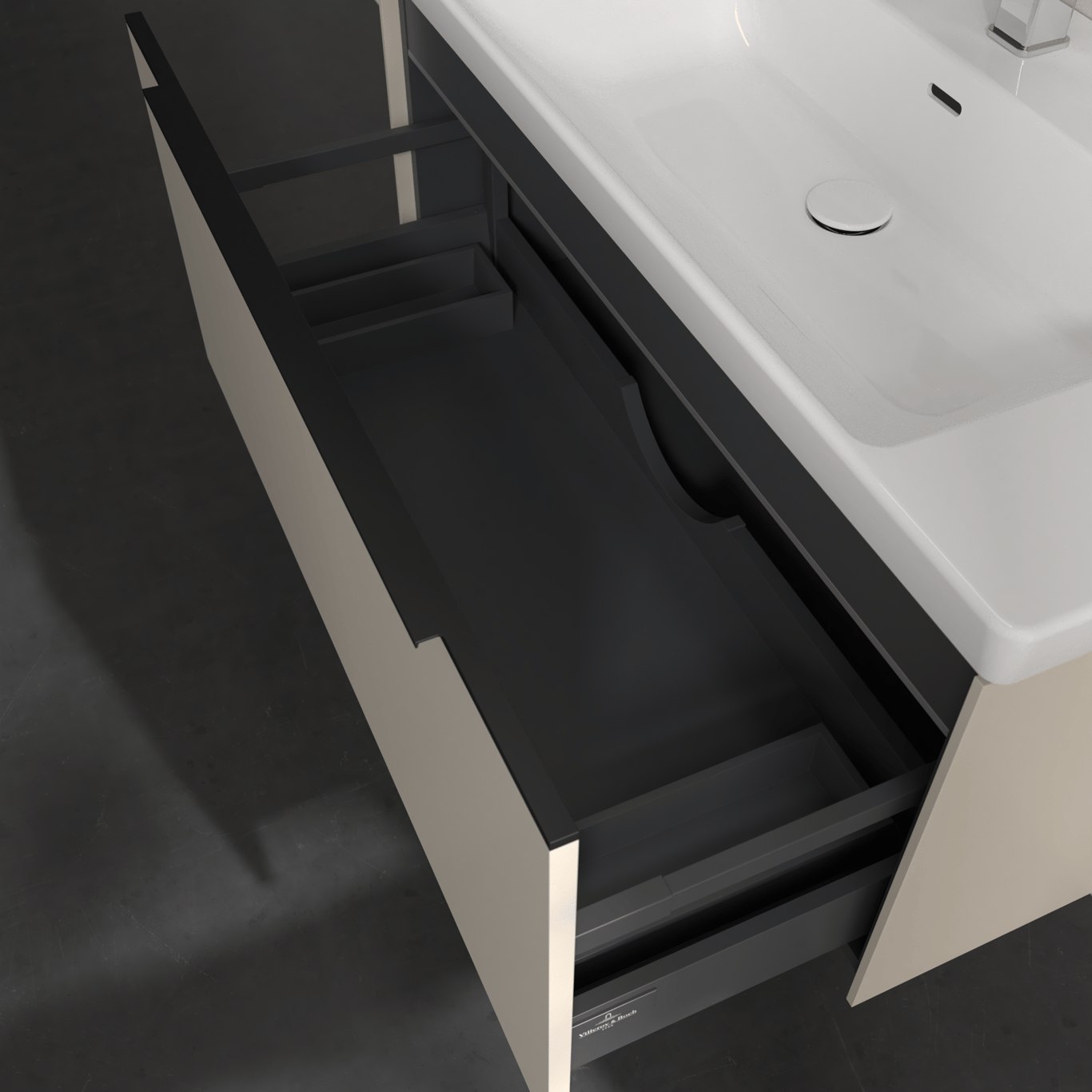 V&B SUBWAY 3.0 SERVANTSKAP 97X42 CASHMERE GREY M/LYS HÅNDTAK I VOLCANO BLACK