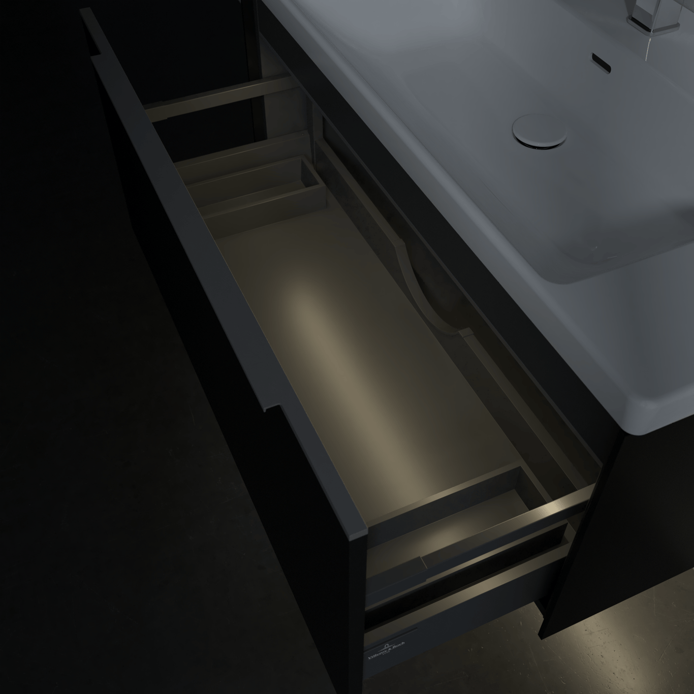 V&B SUBWAY 3.0 SERVANTSKAP 97X42 VOLCANO BLACK M/LYS HÅNDTAK I KROM