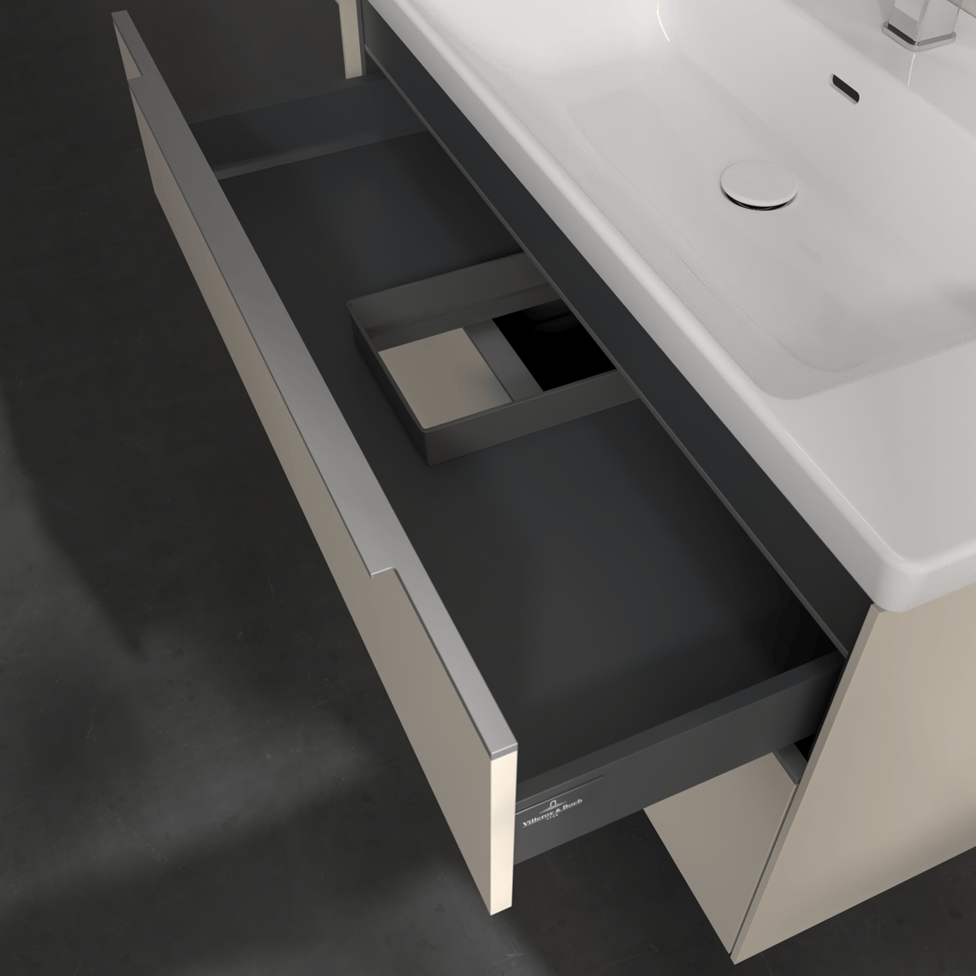 V&B SUBWAY 3.0 SERVANTSKAP 97X57 CASHMERE GREY M/LYS HÅNDTAK I KROM