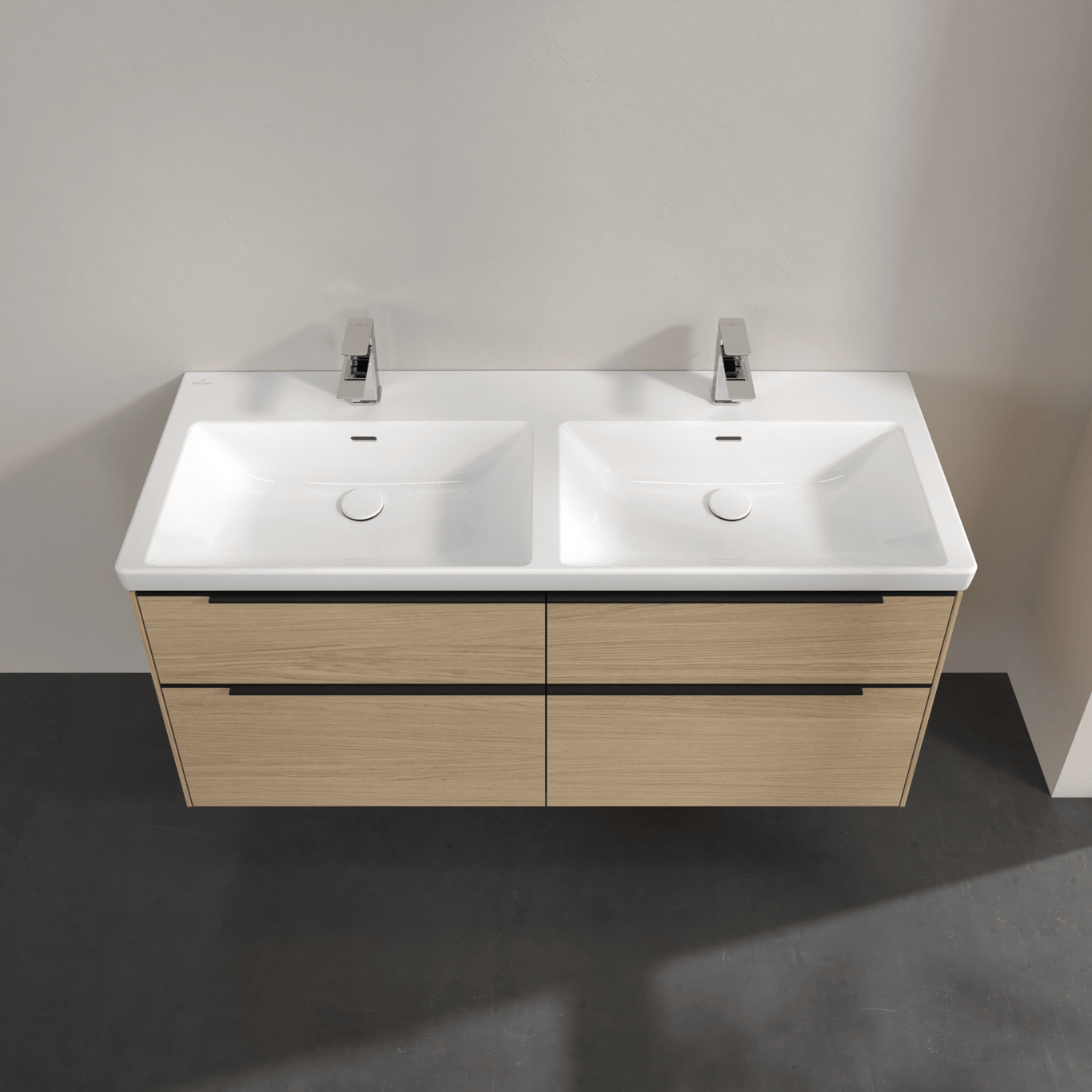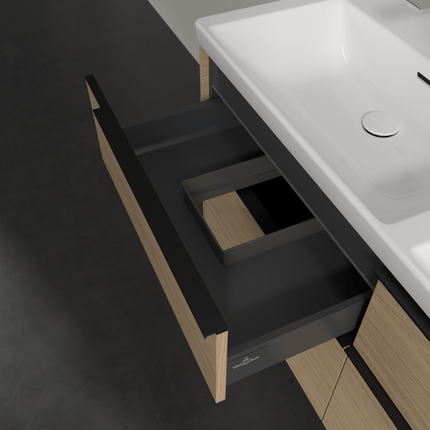 V&b subway 3.0 servantskap 127x57 f/dobbel servant arizona oak m/lys håndtak i volcano black