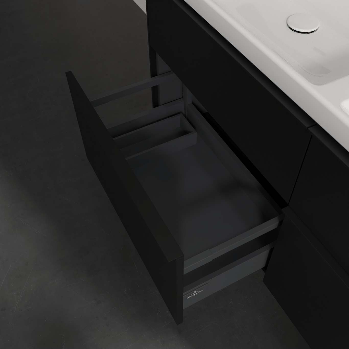 Servantskapet har belyste skuffer med god oppbevaringsplass, og en soft close- og self close-funksjon som sørger for myk lukking, selv når skuffene blir smelt igjen. LED-lyset i skuffen har integrert bevegelsessensor så den automatisk skrur seg på og av når skuffen åpnes og lukkes.
