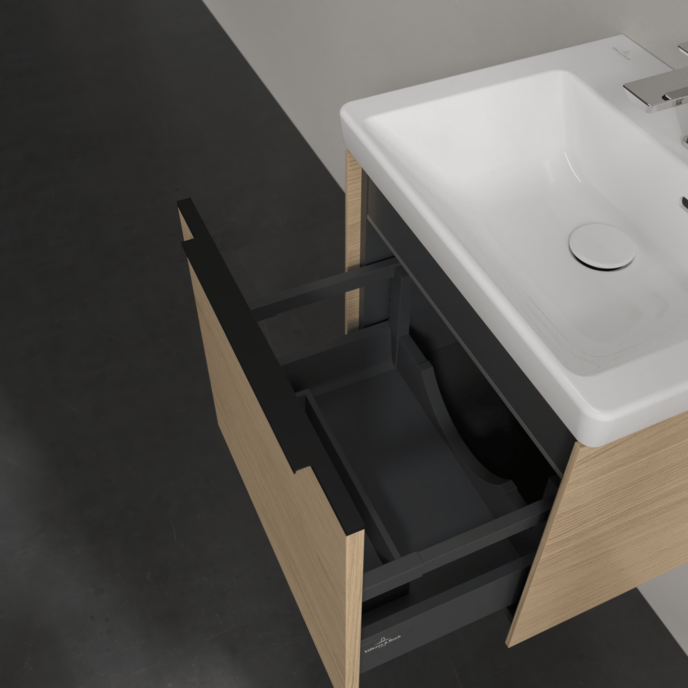 V&B SUBWAY 3.0 SERVANTSKAP 47X42 ARIZONA OAK M/LYS HÅNDTAK I VOLCANO BLACK