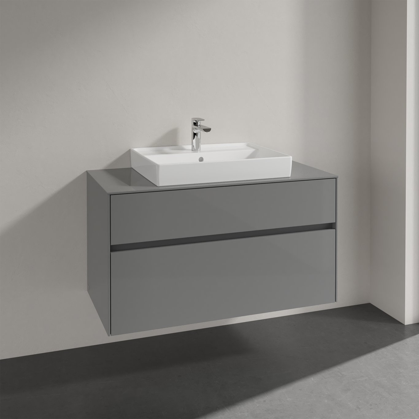 Villeroy & boch collaro servantskap 100 for servant midt 60 cm m/2 skuffer grå høyglans