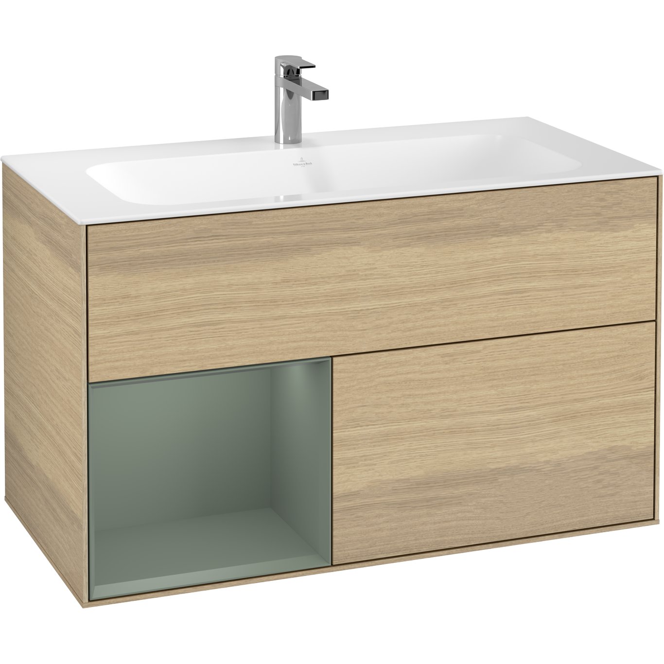 V&B FINION SERVANTSKAP 100 EIK FINÉR EMOTION-LYS VENSTRESTILT OLIVENGRØNN HYLLE