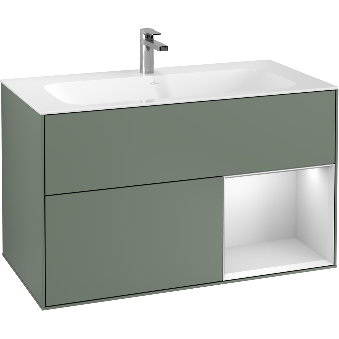 V&b finion servantskap 100 oliven matt lakk emotion-lys, høyrestilt hvitmatt hylle