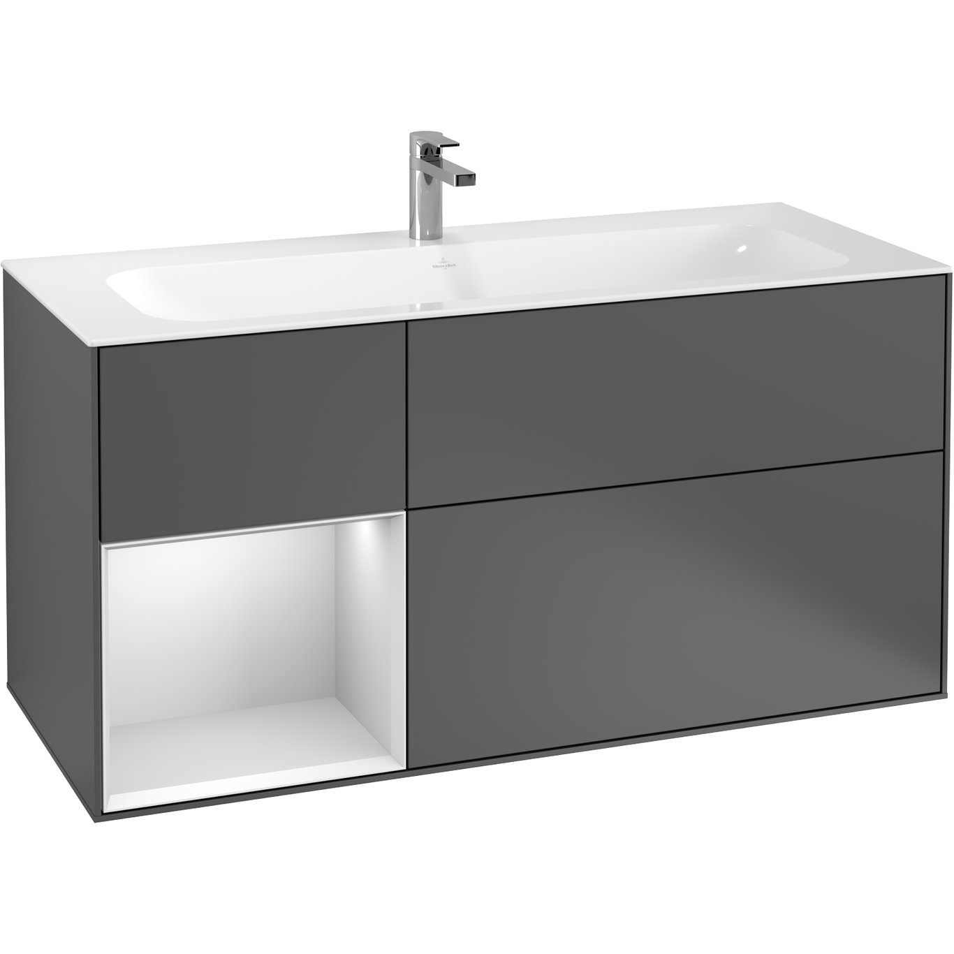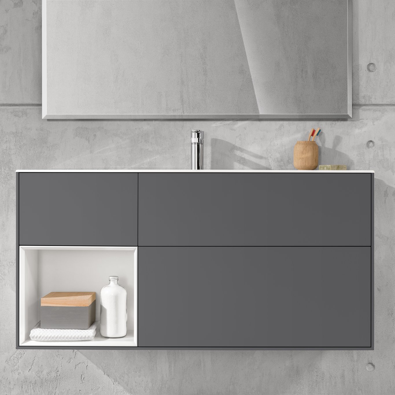 V&B FINION SERVANTSKAP 120 ANTRASITT MATT LAKK EMOTION-LYS, VENSTRESTILT HVITMATT HYLLE