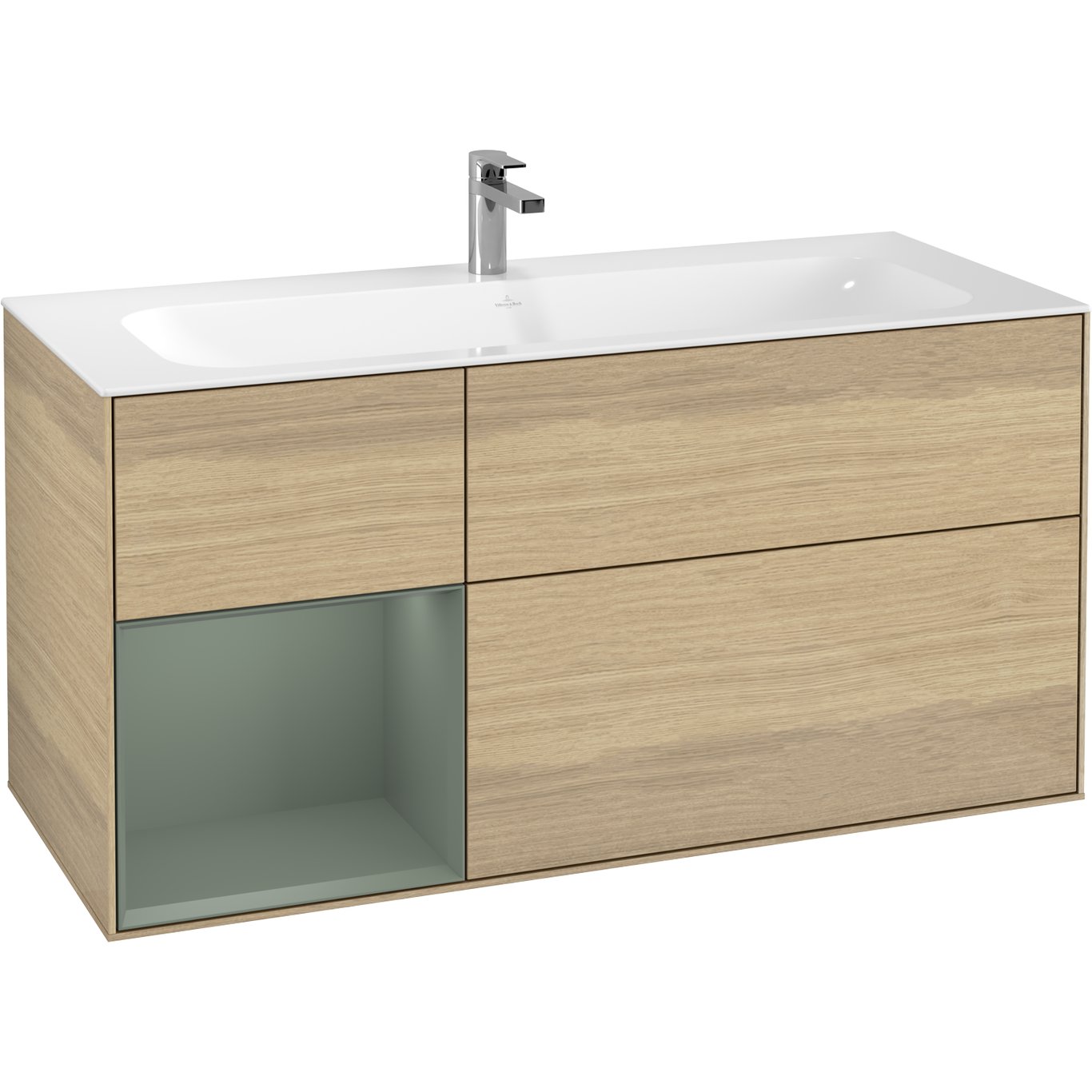 V&B FINION SERVANTSKAP 120 EIK FINÉR M/LYS VENSTRESTILT OLIVENGRØNN HYLLE