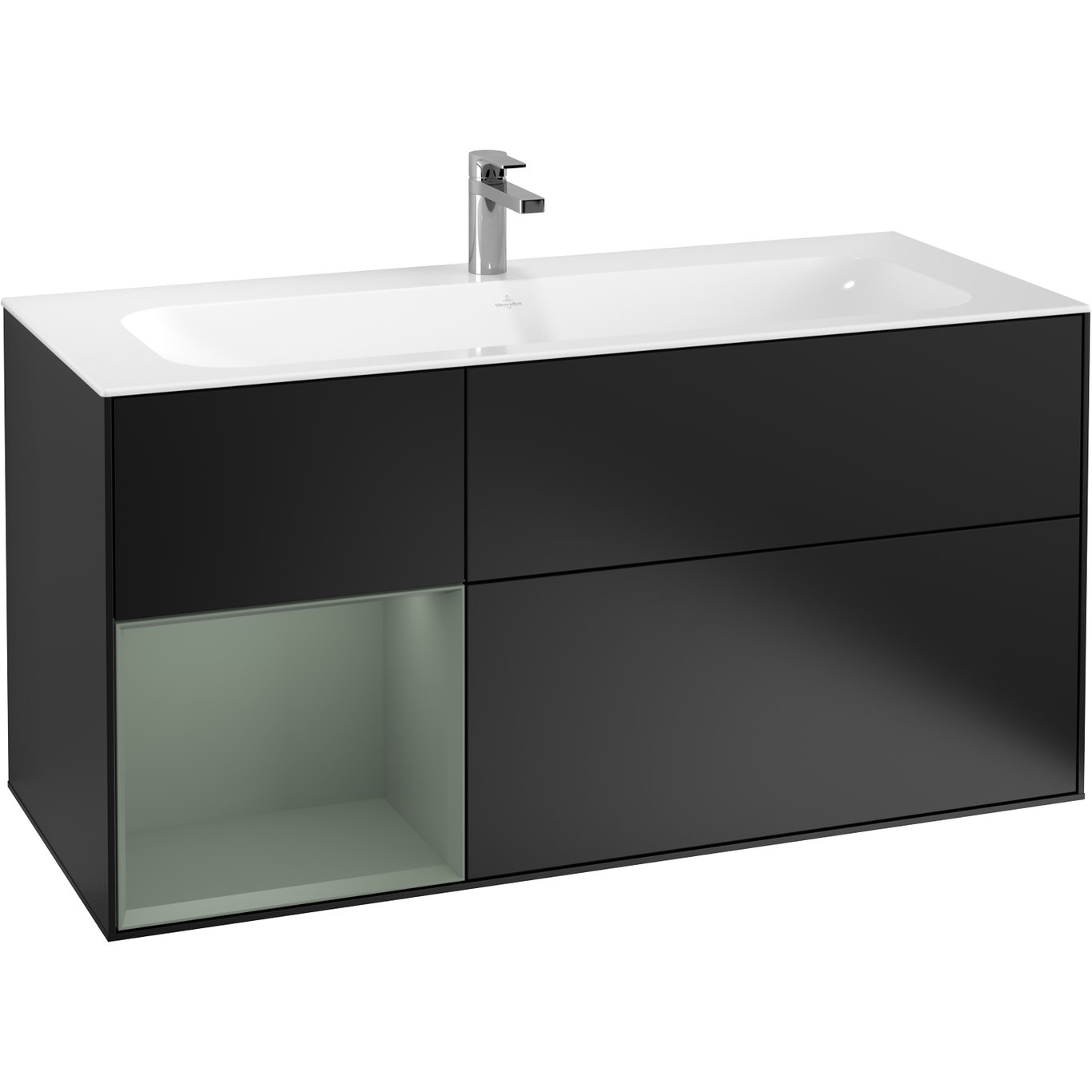 V&B FINION SERVANTSKAP 120 SORT MATT LAKK M/LYS VENSTRESTILT OLIVENGRØNN HYLLE