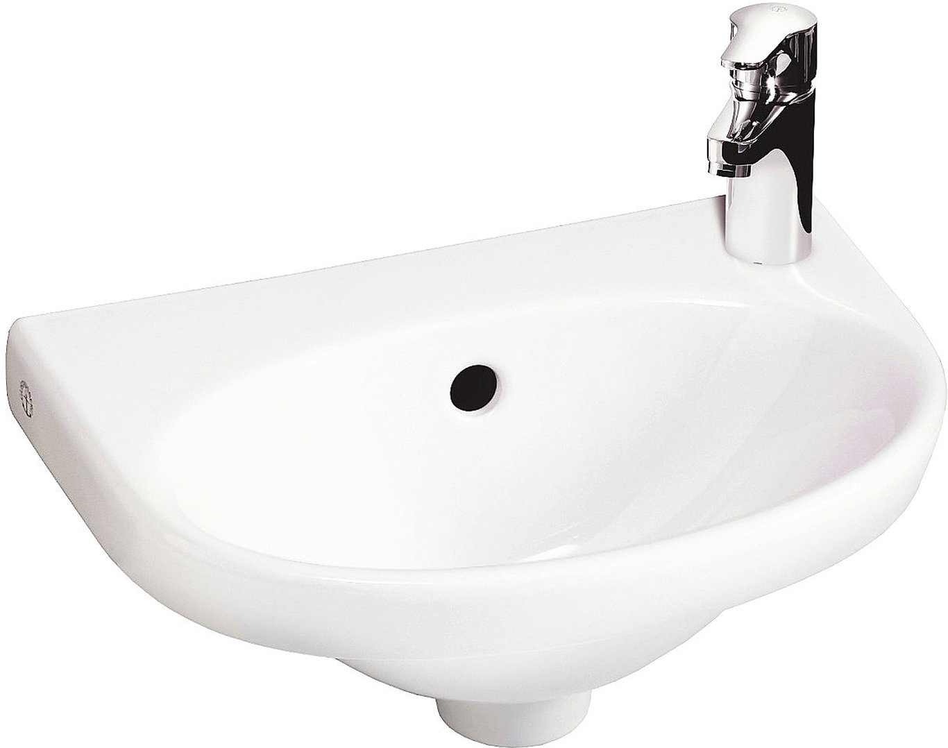 Liten og flott Gustavsberg Nautic servant med kranhull til høyre.