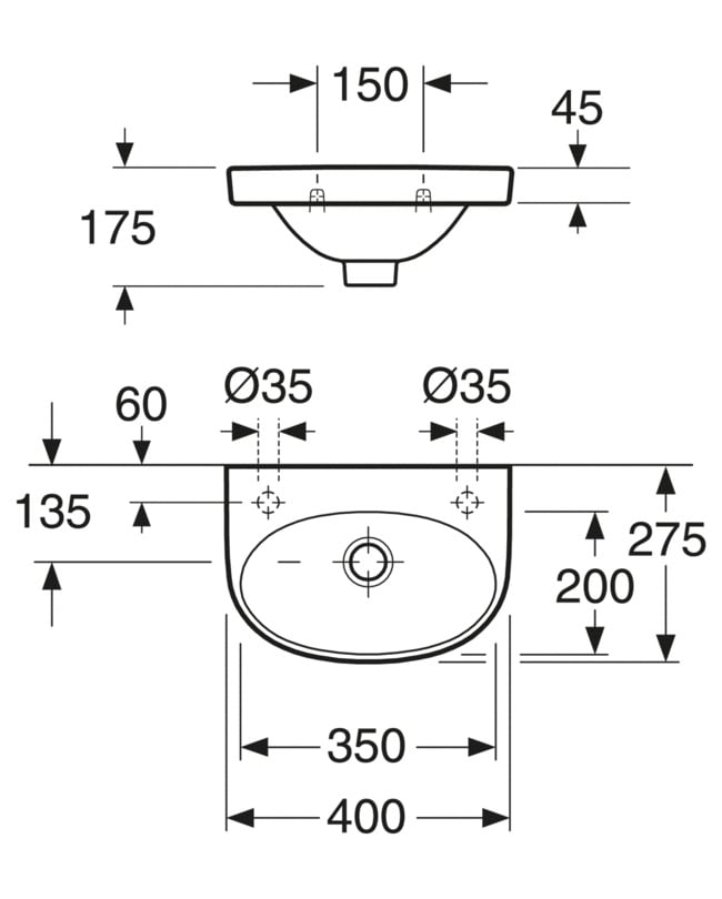Genial liten vask med minimalistisk design for mindre bad / toalett. For boltmontering
