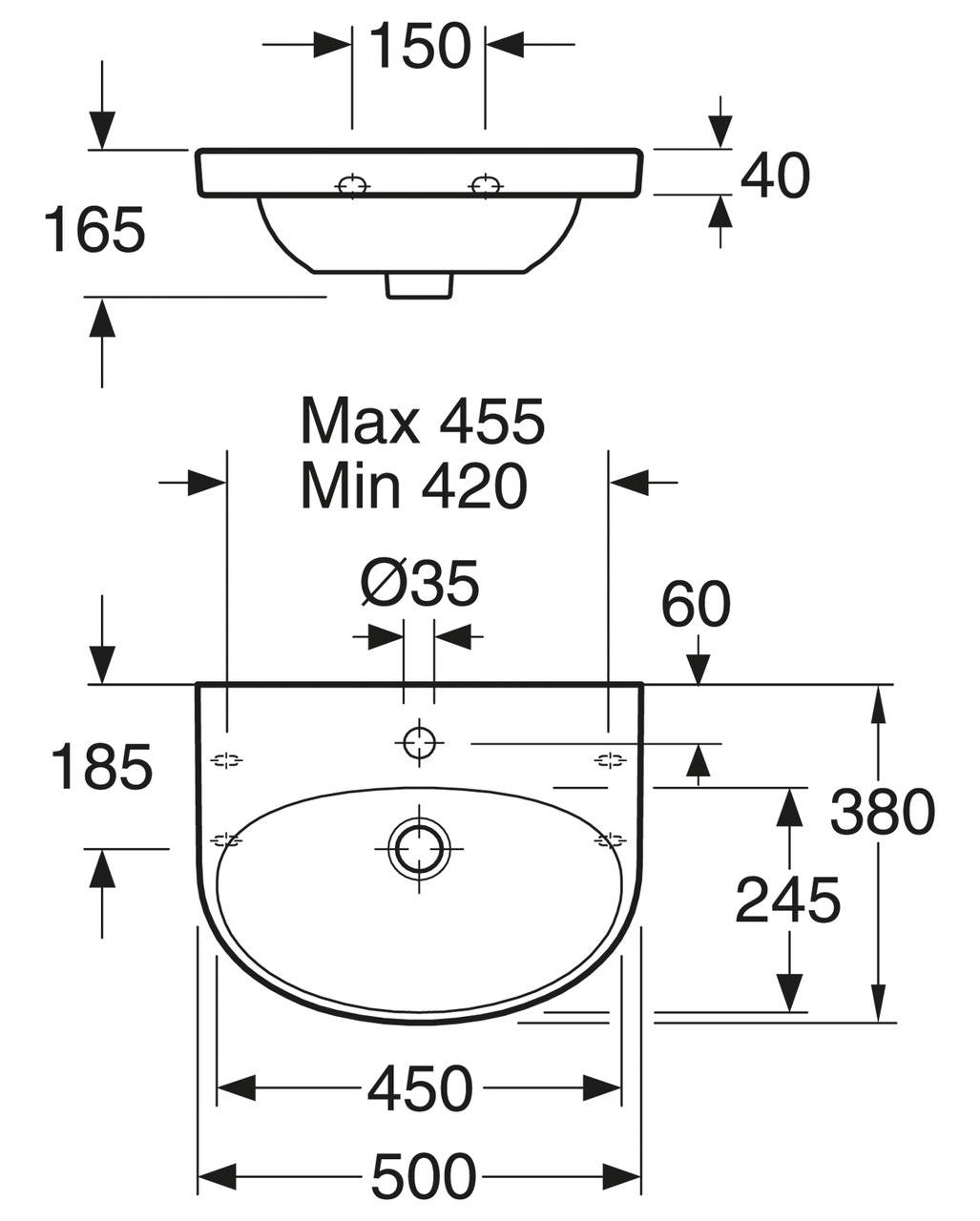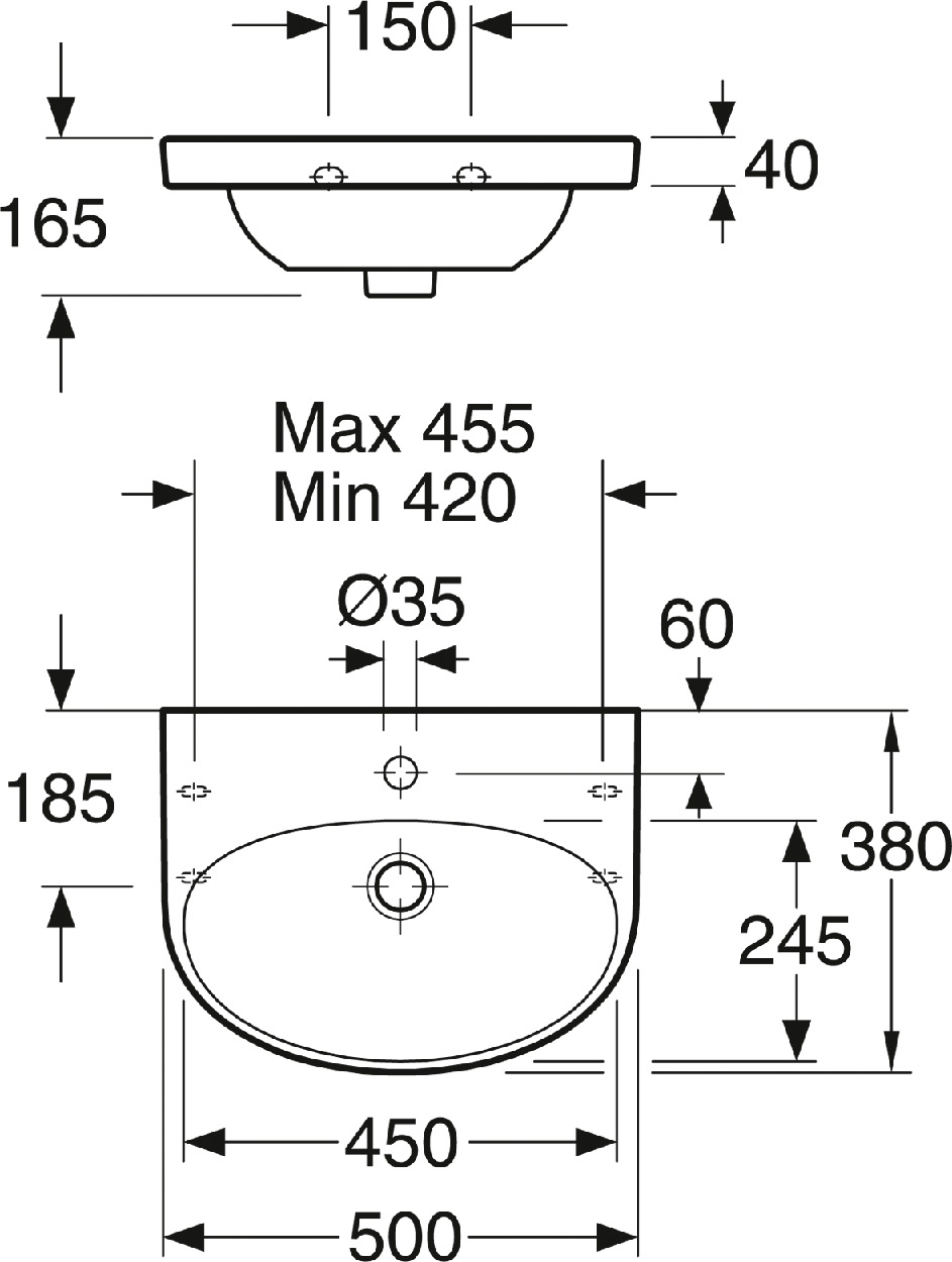 Vegghengt moderne servant med Ceramic+ fra Gustavsberg i størrelse 50x38cm.