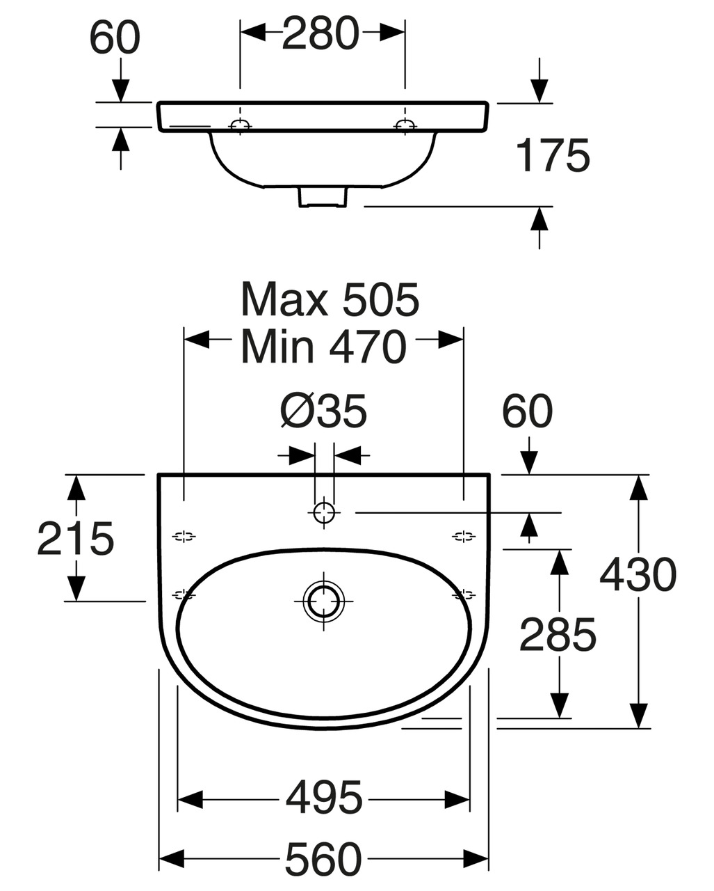 GUSTAVSBERG NAUTIC 5556 SERVANT 56X43 CM M/ARMATURHULL M/OVERLØP M/C+